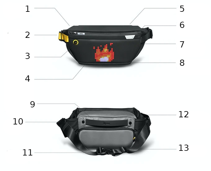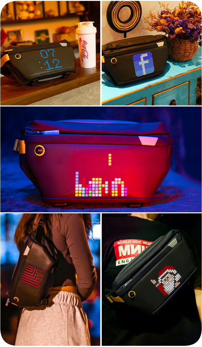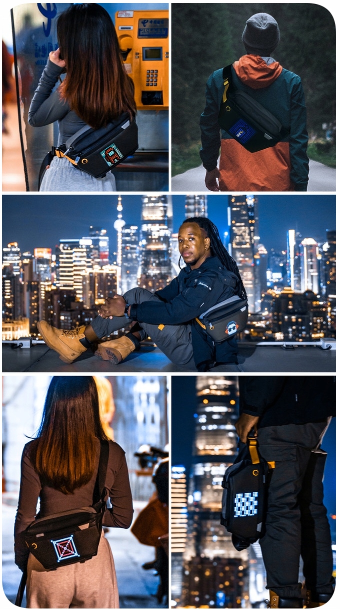 Pixoo Slingbag — це стильна, інноваційна сумка, яка відповідає вашому стилю та водночас добре підходить у повсякденному міському житті. Він має вбудований світлодіодний екран і мобільну програму, за допомогою якої можна малювати анімацію, показувати свій улюблений логотип або візуально спілкуватися з іншими.