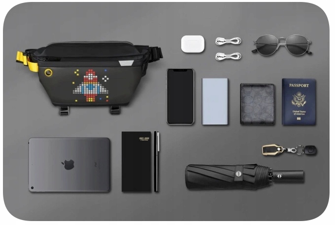 Сумка Pixoo Slingbag — це ідеальне рішення для стильного зберігання речей, які ми використовуємо щодня. Він пропонує можливість ділитися та відображати анімацію піксельного мистецтва, а також забезпечує багато відділень і функцій для зберігання того, що ви найчастіше берете з собою в дорогу.