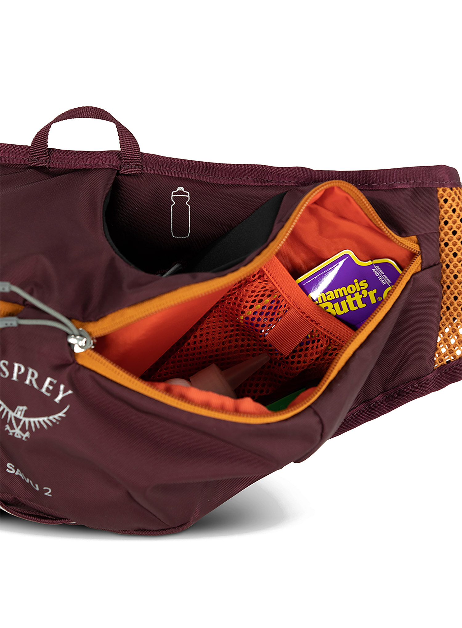 Поясна сумка Osprey Savu 2 - aprium purple була розроблена для всіх, хто подорожує бездоріжжям на двох колесах. У цій моделі можна зручно транспортувати цінні речі, запасну трубку та пляшку з водою.