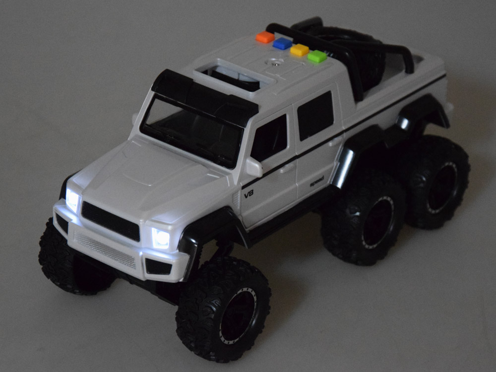 Завдяки звуковим і світловим ефектам він подарує радість і веселощі протягом довгих годин. Автомобіль оснащений цілими 6 колесами (сьоме на багажнику) на шинах з великим протектором, тому підлога в квартирі буде безпечною, а перешкоди не матиме значення.