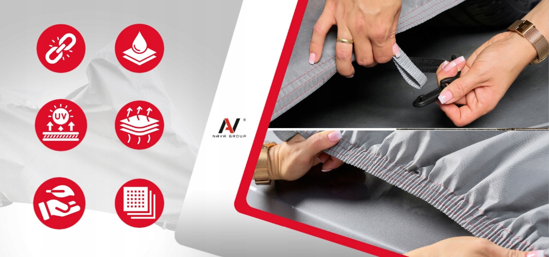 - protection UV: The cover of the cover protects Транспортний засіб проти шкідливого УФ -випромінювання, яке може вплинути на згасання лаку та знищити гумові елементи