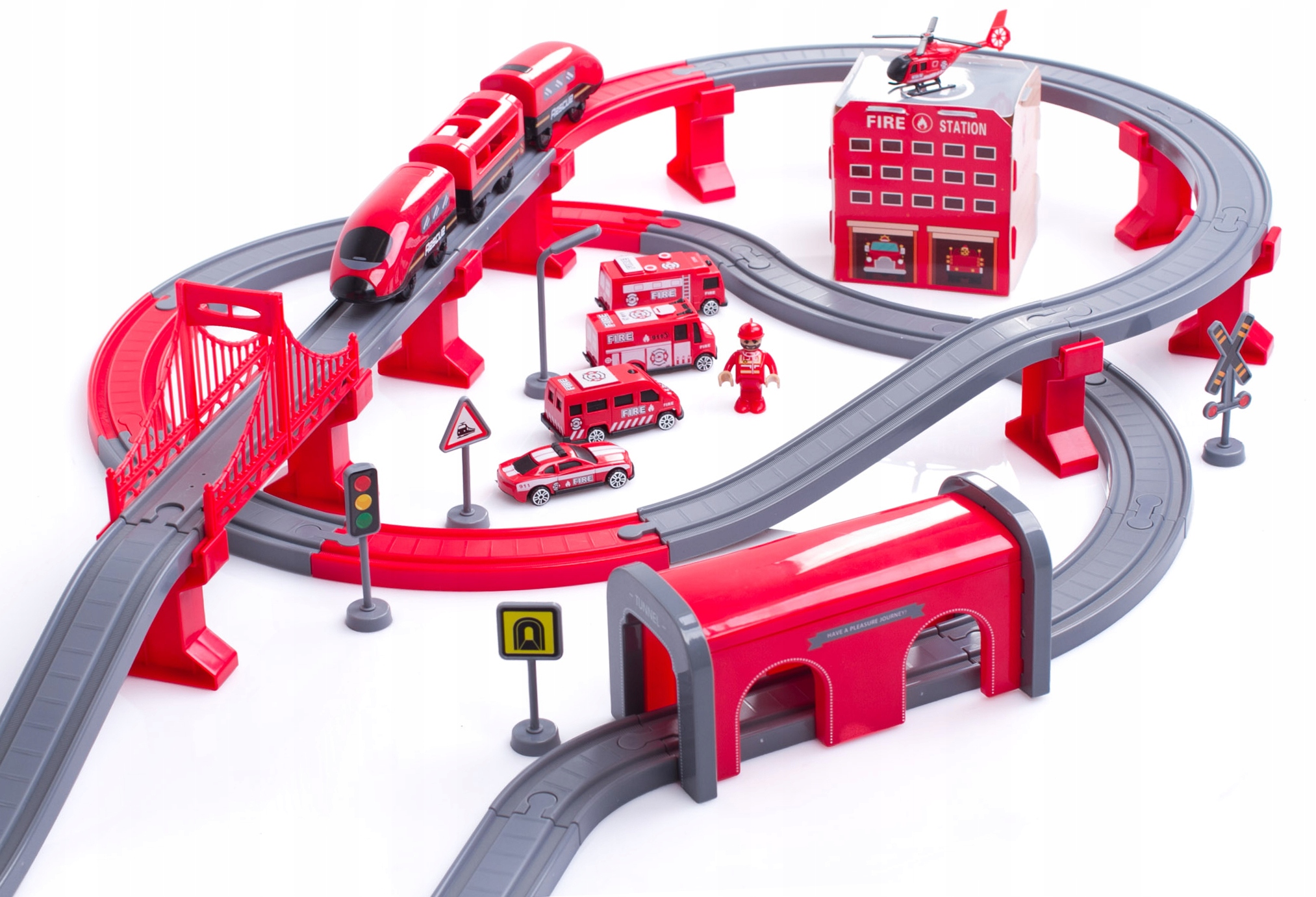 Поїзд унікальний і сподобається не лише любителям поїздів, а й любителям пожежної справи. Крім довгої траси з тунелем і віадуком, тут також розташована пожежна станція з посадковим майданчиком на даху та 4 автомобілі та гелікоптер.