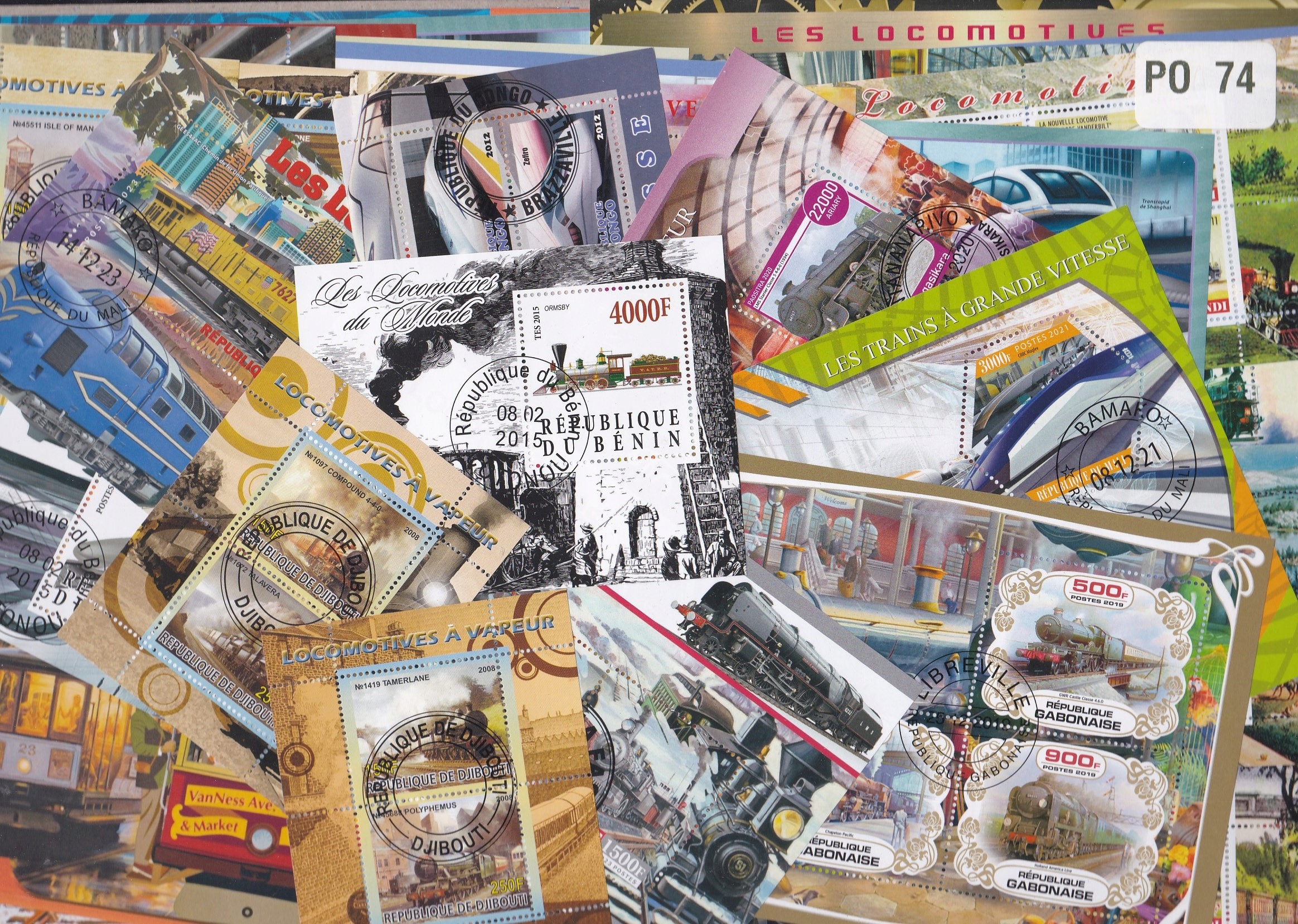 ПОЇЗДИ ЗАЛІЗНИЦЯ 74 шт. - поштові марки, блоки.