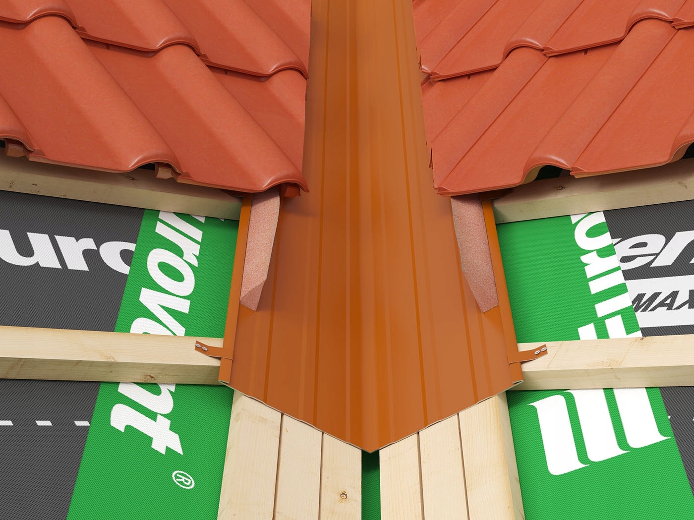 Покрівля Eurovent® BASKET L, поздовжньо профільована, виготовлена з алюмінієвого листа, покритого поліефірною фарбою. Використовується для ущільнення даху між двома схилами. Забезпечує належний відведення води з даху.