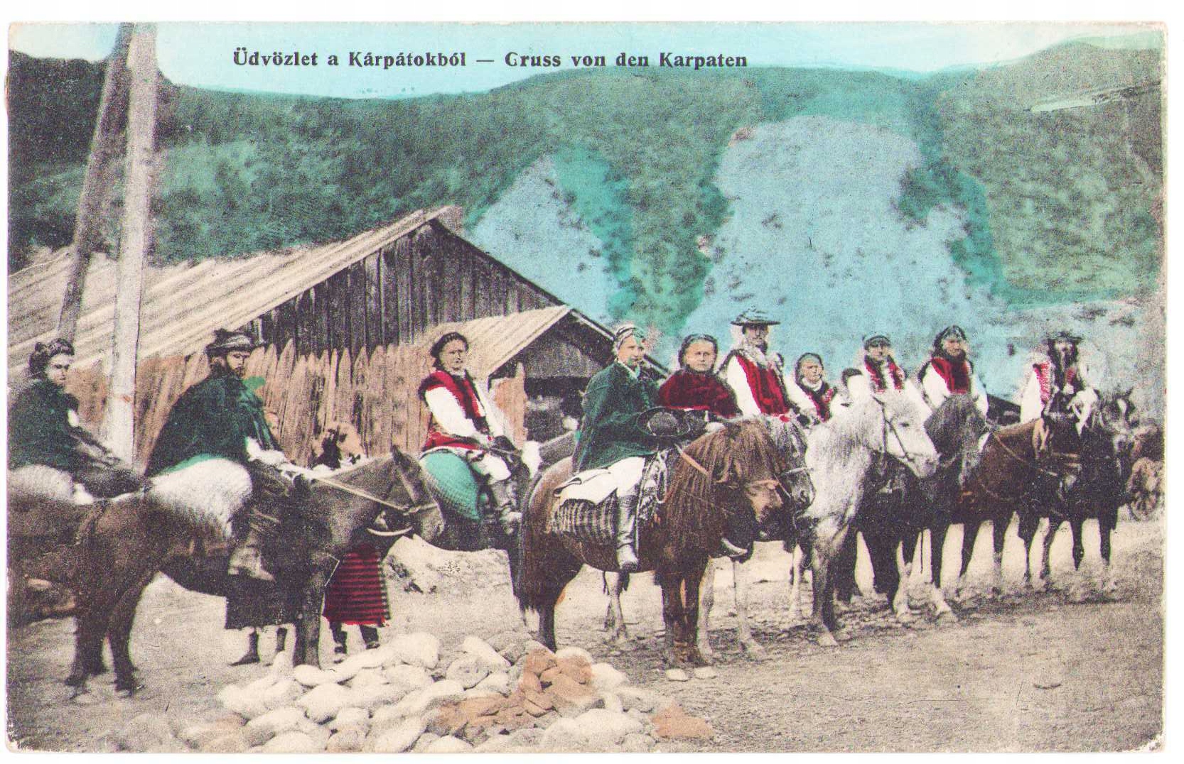 POZDROWIENIA Z KARPAT- 1915 Huculi na koniach wioska