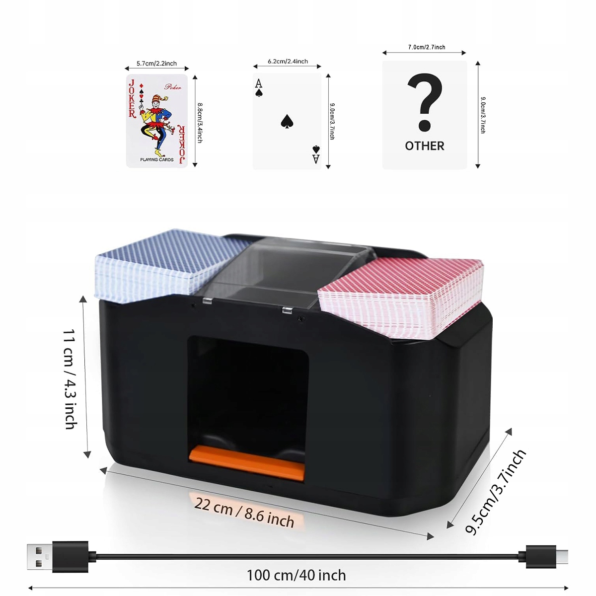 【вбудований -in 2000 мАг акумулятор】 Цей повністю автоматичний картковий завдань оснащений акумулятором великої ємності і підтримує зарядку через тип USB C. Повна зарядка дозволяє перевищувати 1500, що забезпечує тривалому веселощі без частого зарядки. Картка】 Завдяки швидкості перетасовки лише 2,2 секунди, ця шашка ефективно працює в більшості стандартних карткових ігор, включаючи покер, ООН та популярні європейські ігри, такі як Skat, Tarot та Bridge.