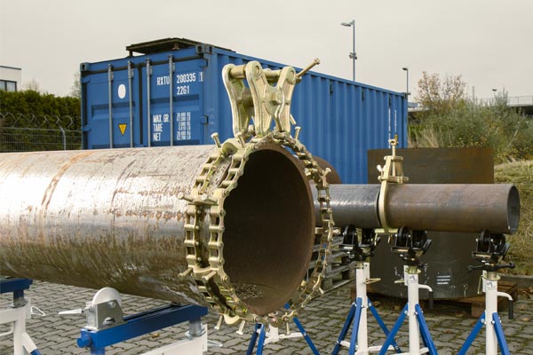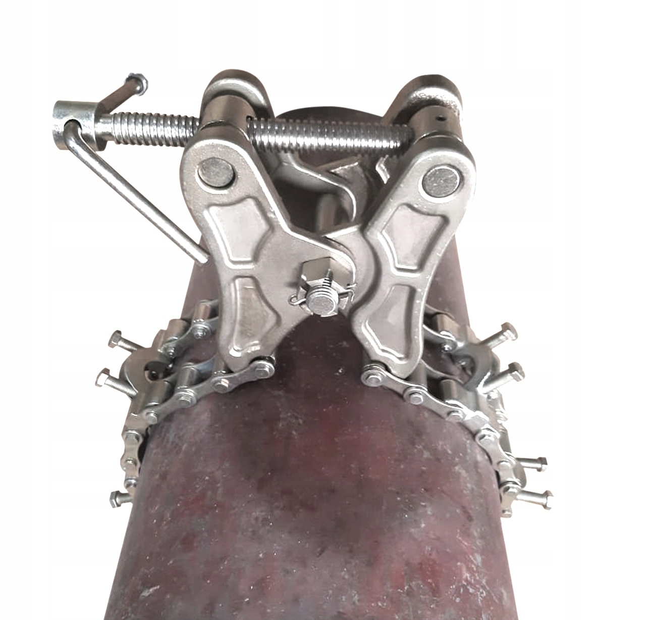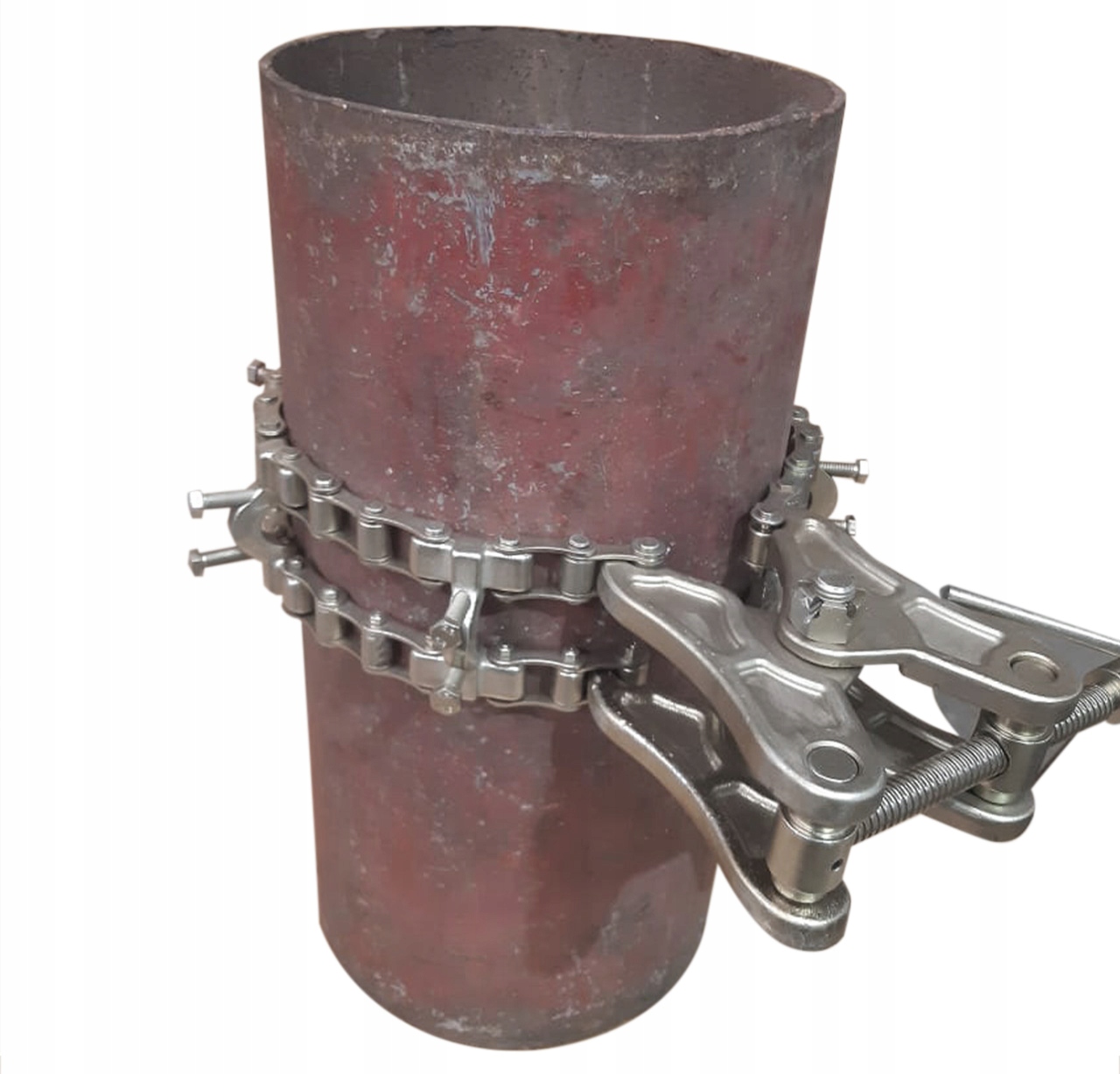 Важкі ланцюгові центриз ручними натяжними кліщами. для швидкого і точного позиціонування сталевих транспортних труб під час монтажу та попереднього виготовлення, переважно в польових умовах.Зведення труб займає мало часу та гарантує дотримання однакової відстані між ними, що суттєво впливає на правильність зварювання та якість зварювання. зварювання.
