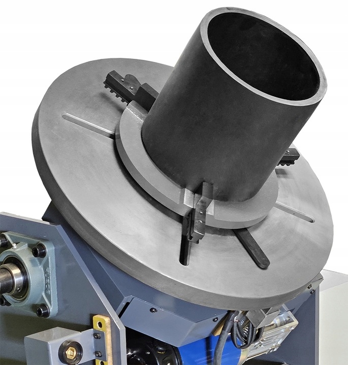 Стіл зварювальний міцний вантажопідйомністюдо 550 кг. До найважливіших особливостей позиціонера відносяться: головка, що обертається електродвигуном, оснащена інвертором, функція нахилу головки до 90°. Зручне управління завдяки педалі. Стіл має точку підключення зварювальної маси, що дозволяє безперервно працювати без необхідності перемикання маси при кожному обертанні столу. Стандартна відстань між пазами в столі дозволяє встановити будь-які лещата, доступні на ринку.