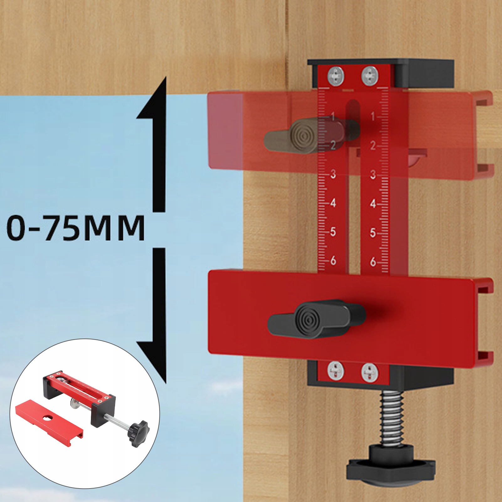 4. Регульований діапазон: цей інструмент для встановлення дверей шафи має регульований діапазон затиску, легко затискаючи дошку товщиною менше 85 мм, що дозволяє регулювати дверцята шафи вгору та вниз, коли вони переміщуються до 0, так само, як двері, що робить його придатним для різних розмірів дощок шафи