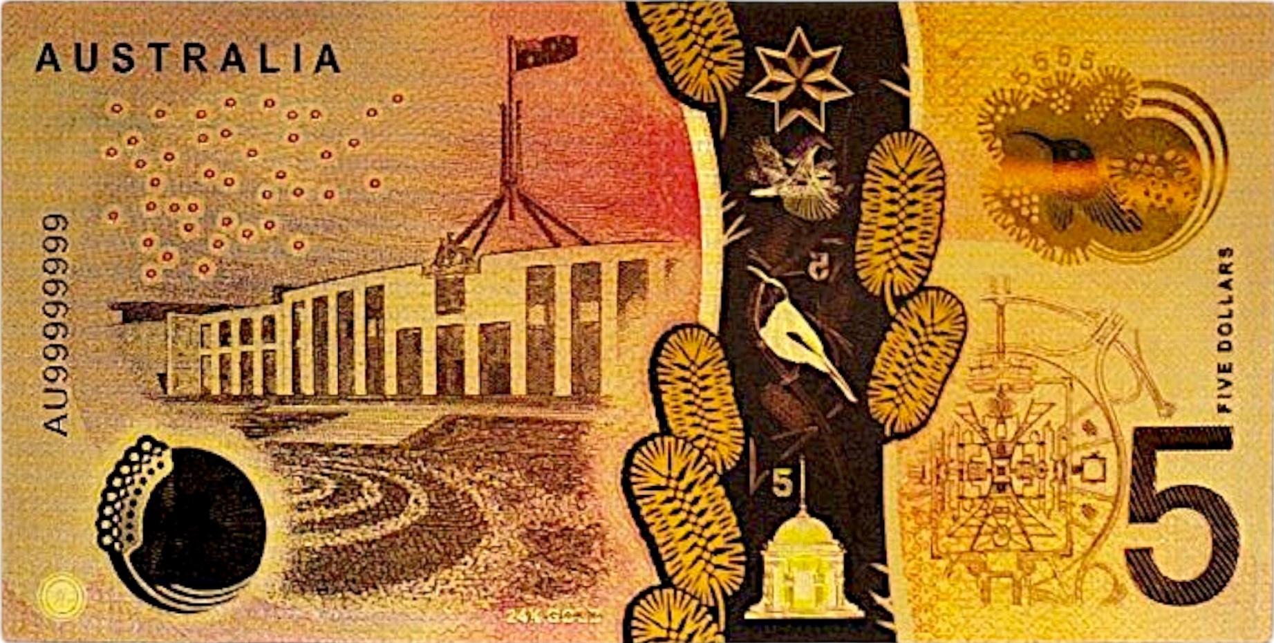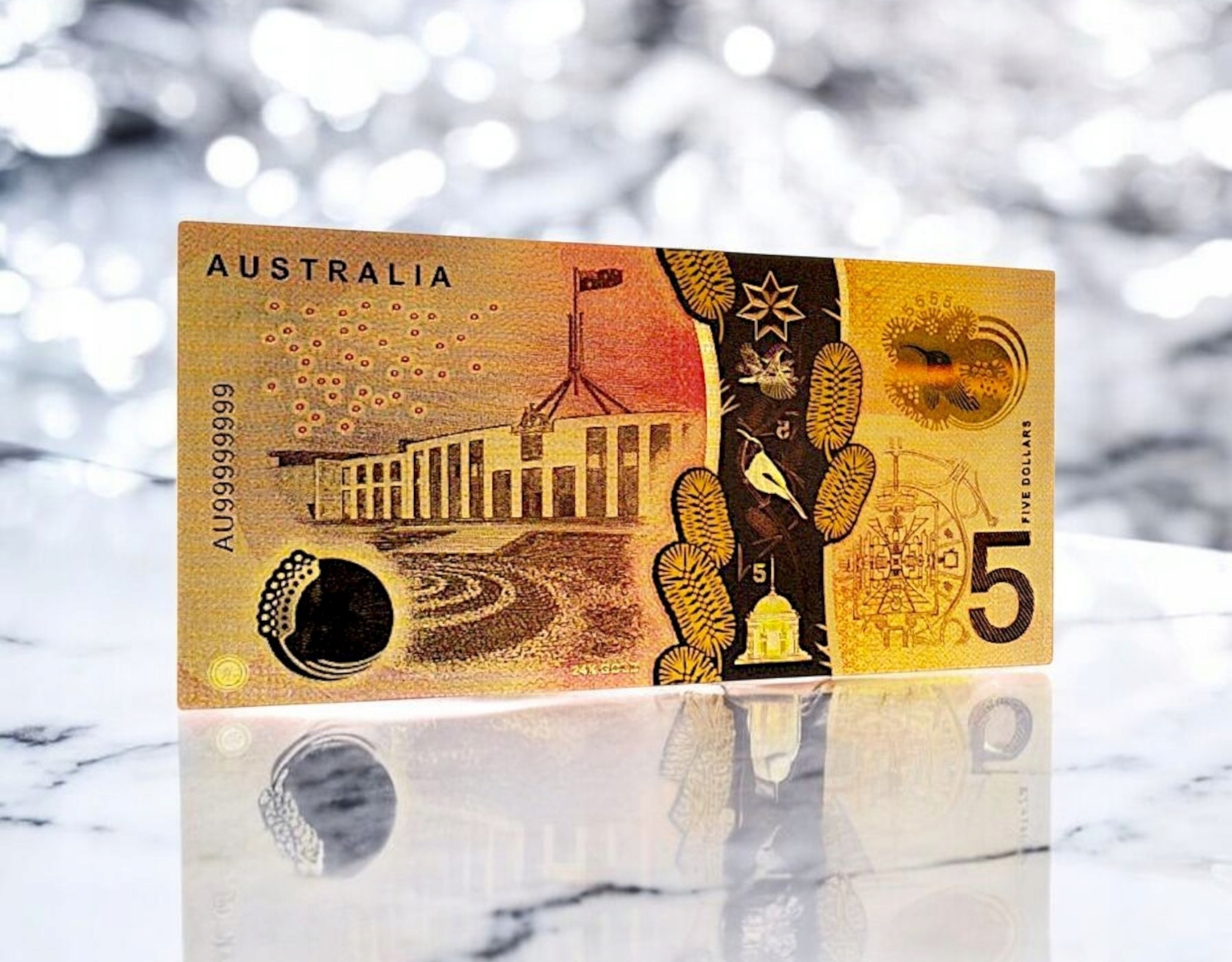 Колекційна позолочена ПВХ-банкнота старої версії 5 австралійських доларів