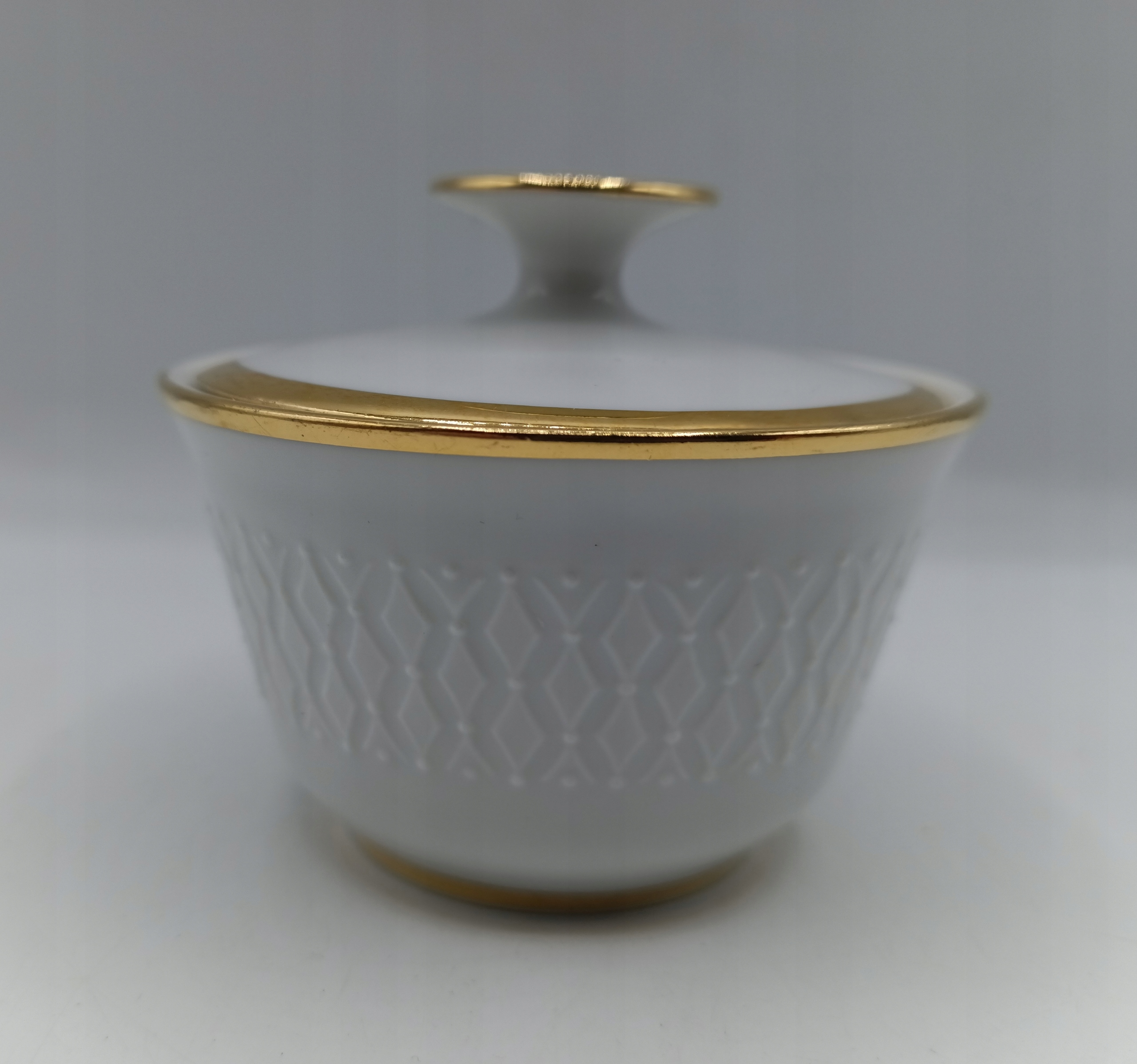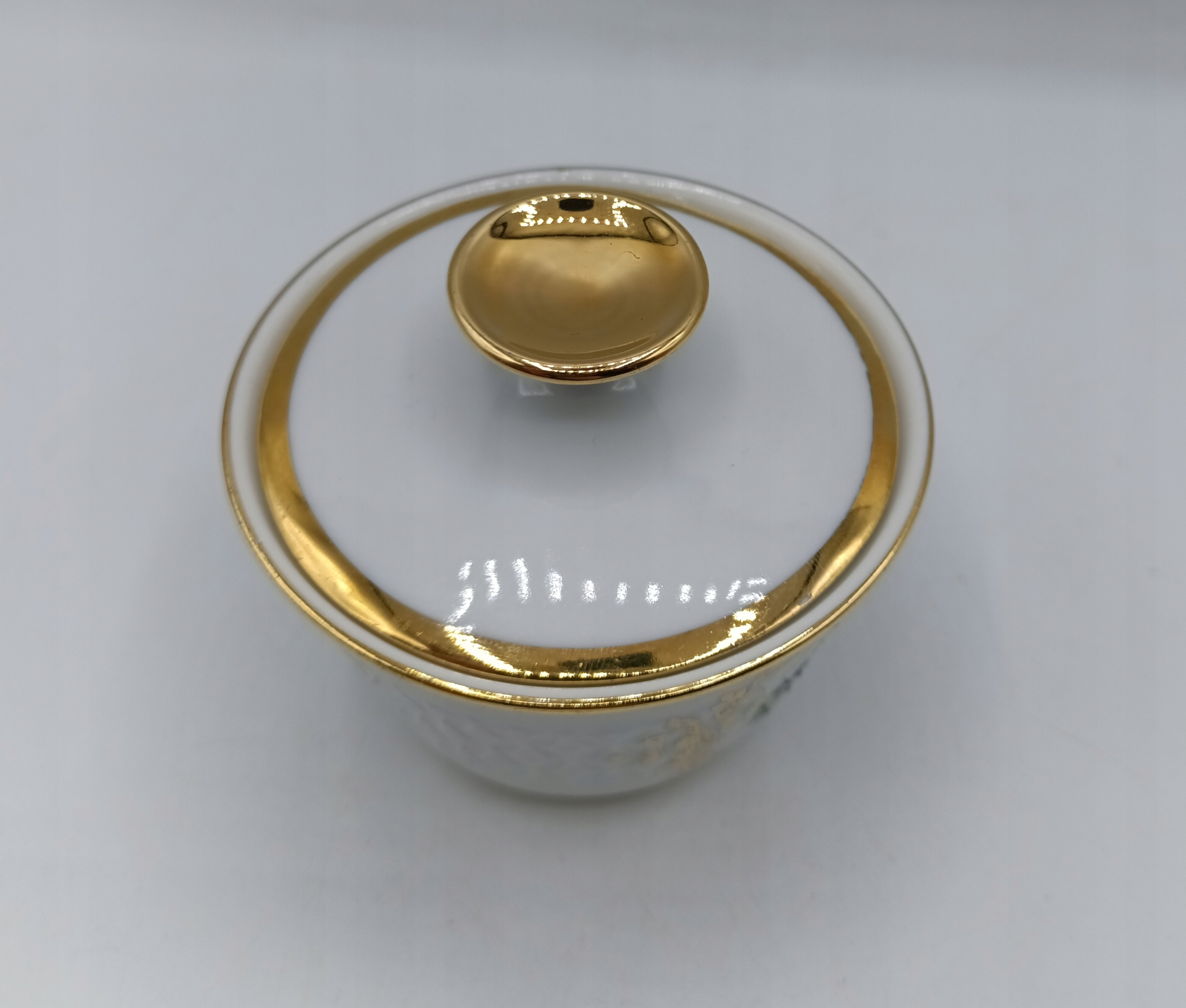 порцеляновий та утилітарний контейнер з кришкою - підписано - Bavaria - золото! Порцеляна. Висота 7 см, діаметр 8,3 см, вага 130 грам. Цукрова миска виглядає так само красиво в реальному житті, як на фотографіях. Анітажний колекціонер та елемент корисності. Я рекомендую!