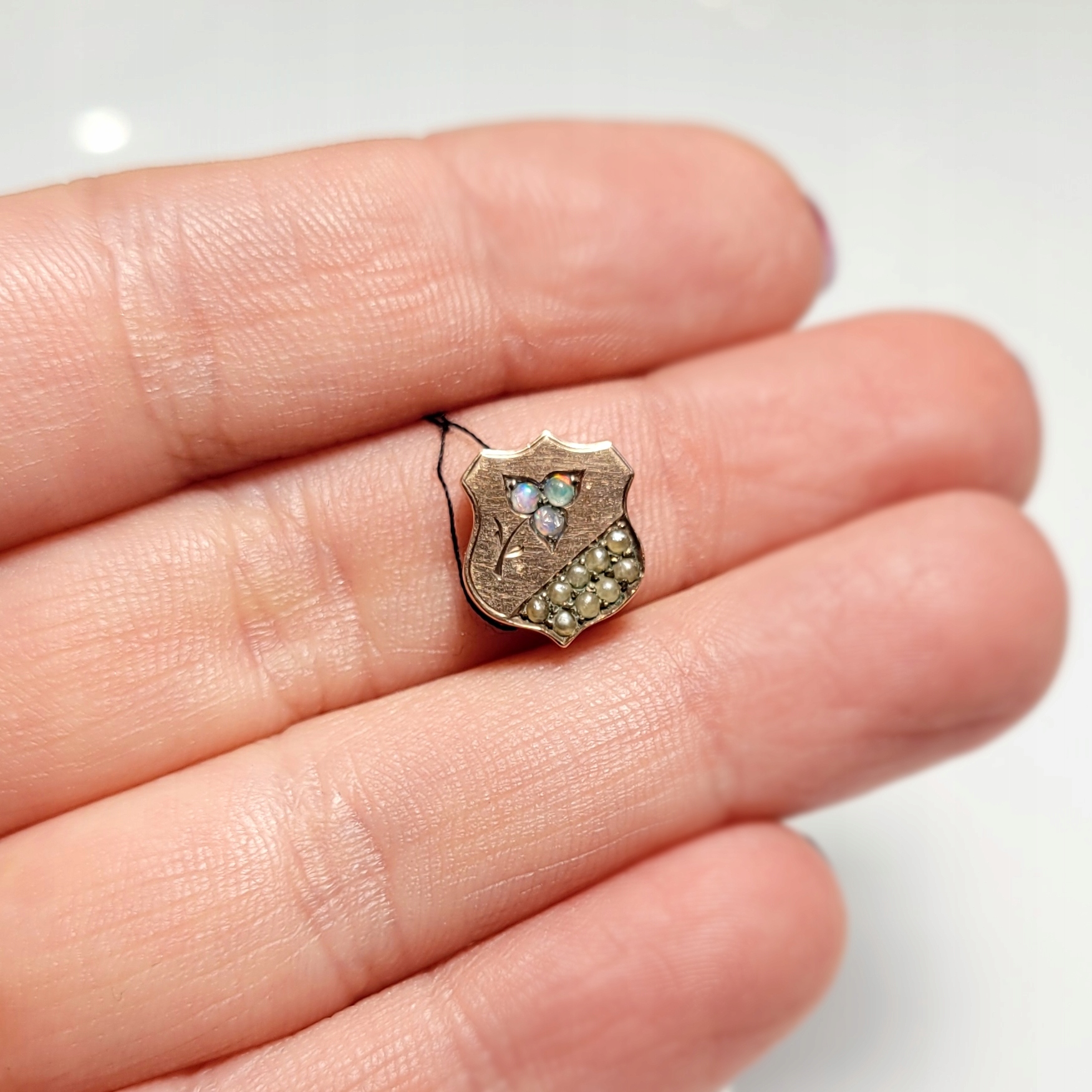 Позолочена каблучка для кулона - щит, герб, опали, перли та напівперли