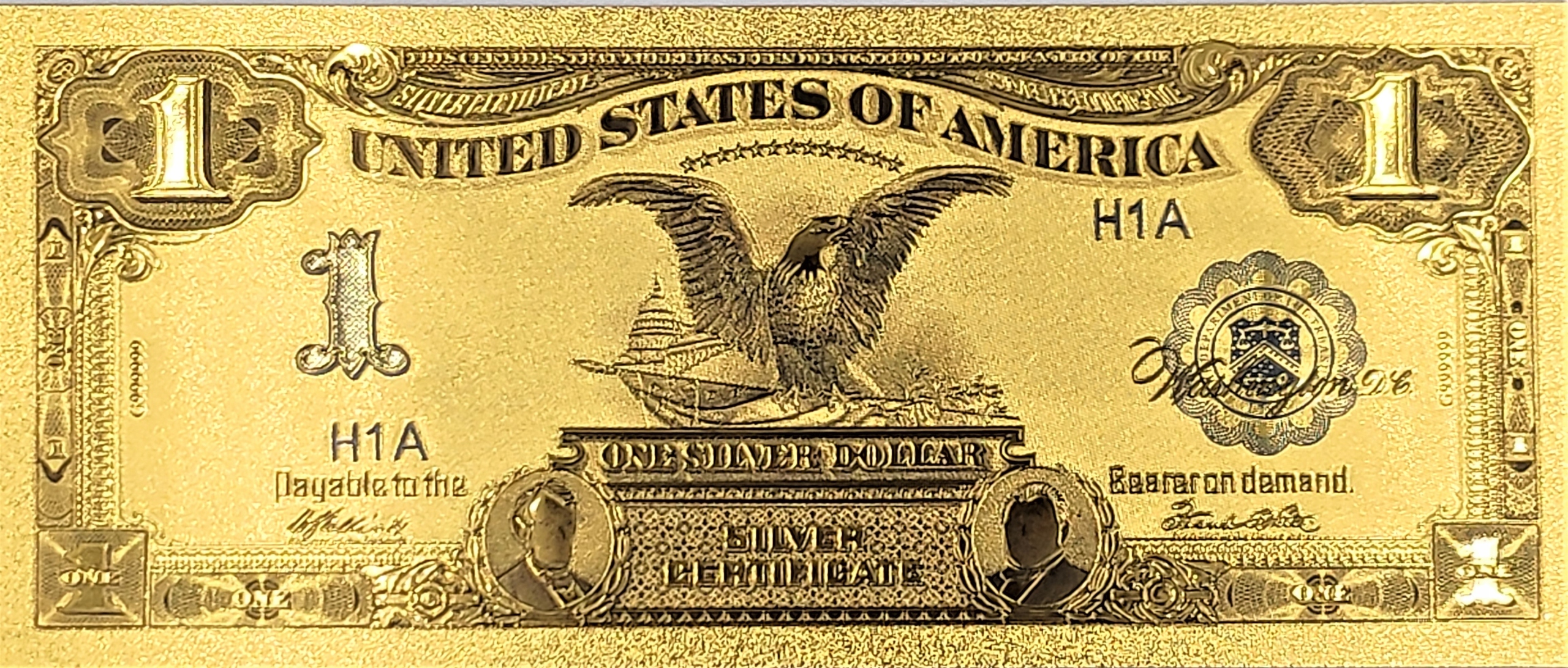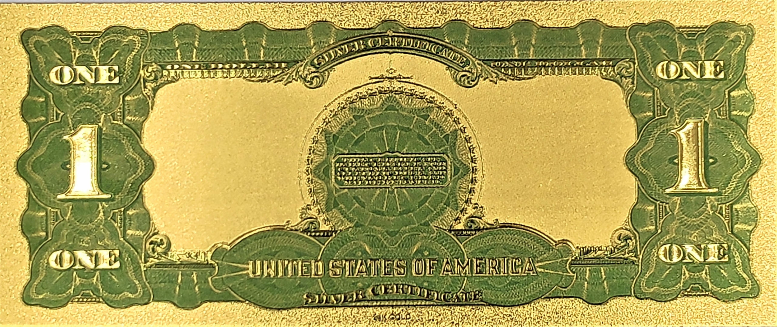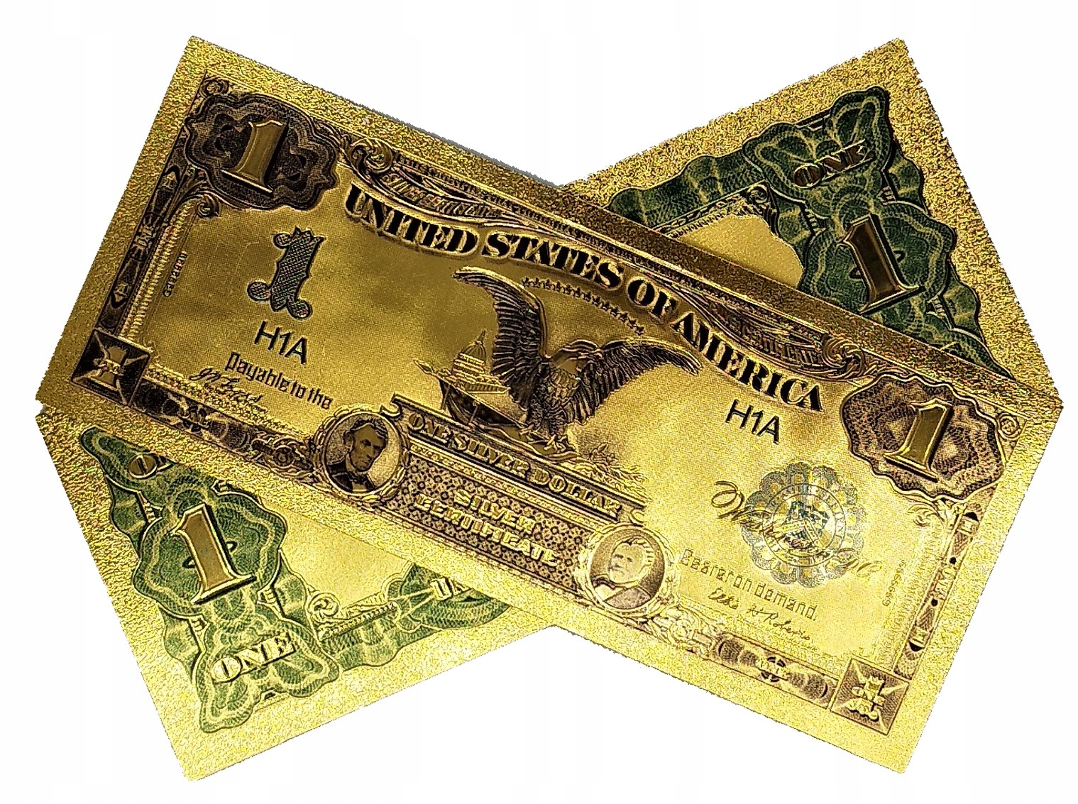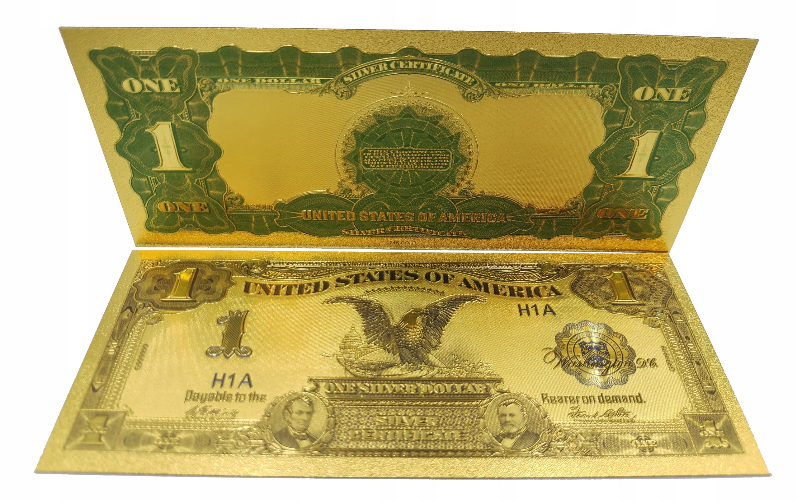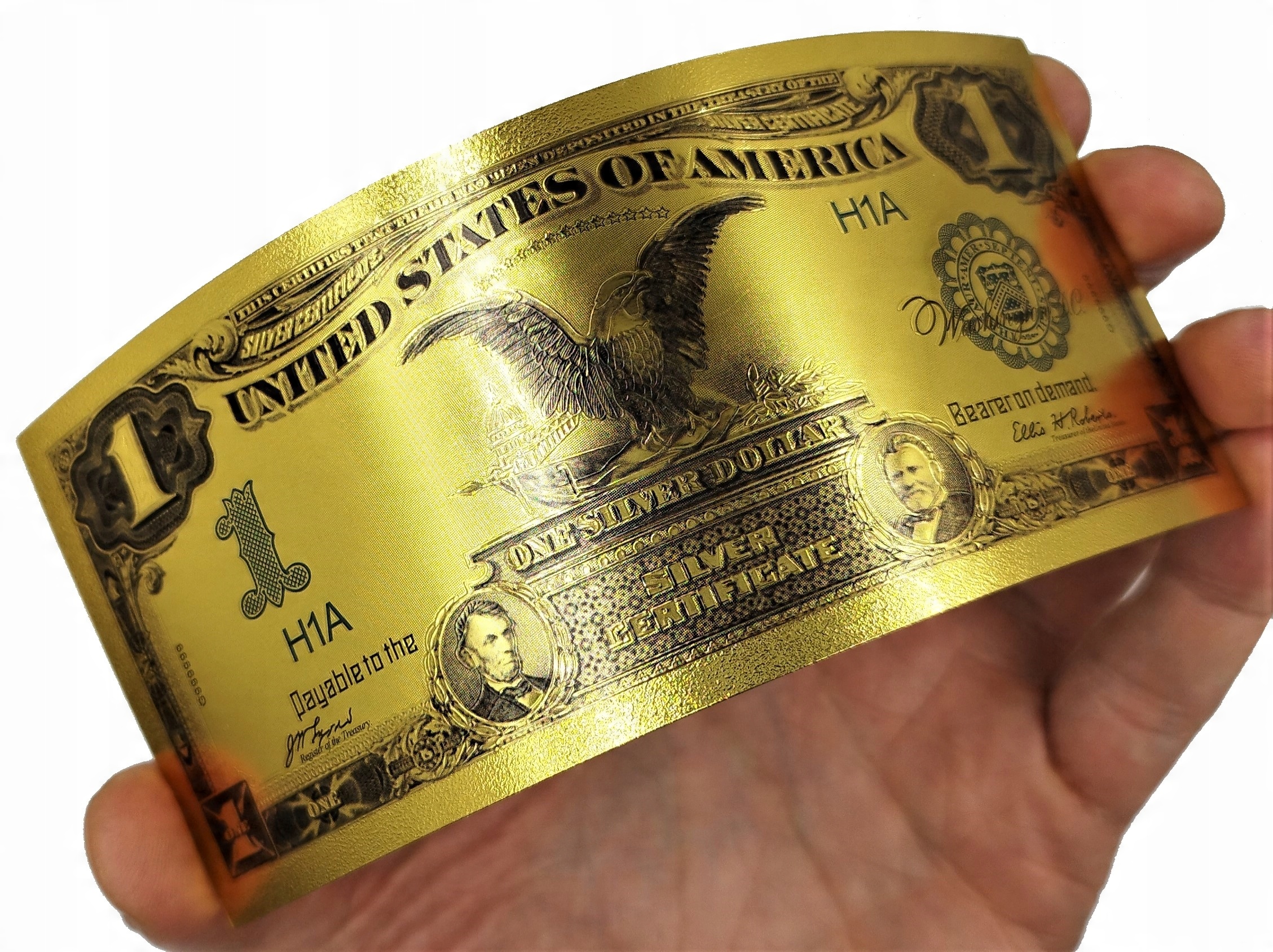 Репліка американської банкноти серії 1899 року, виготовлена з ПВХ і покрита золотою фольгою. b>