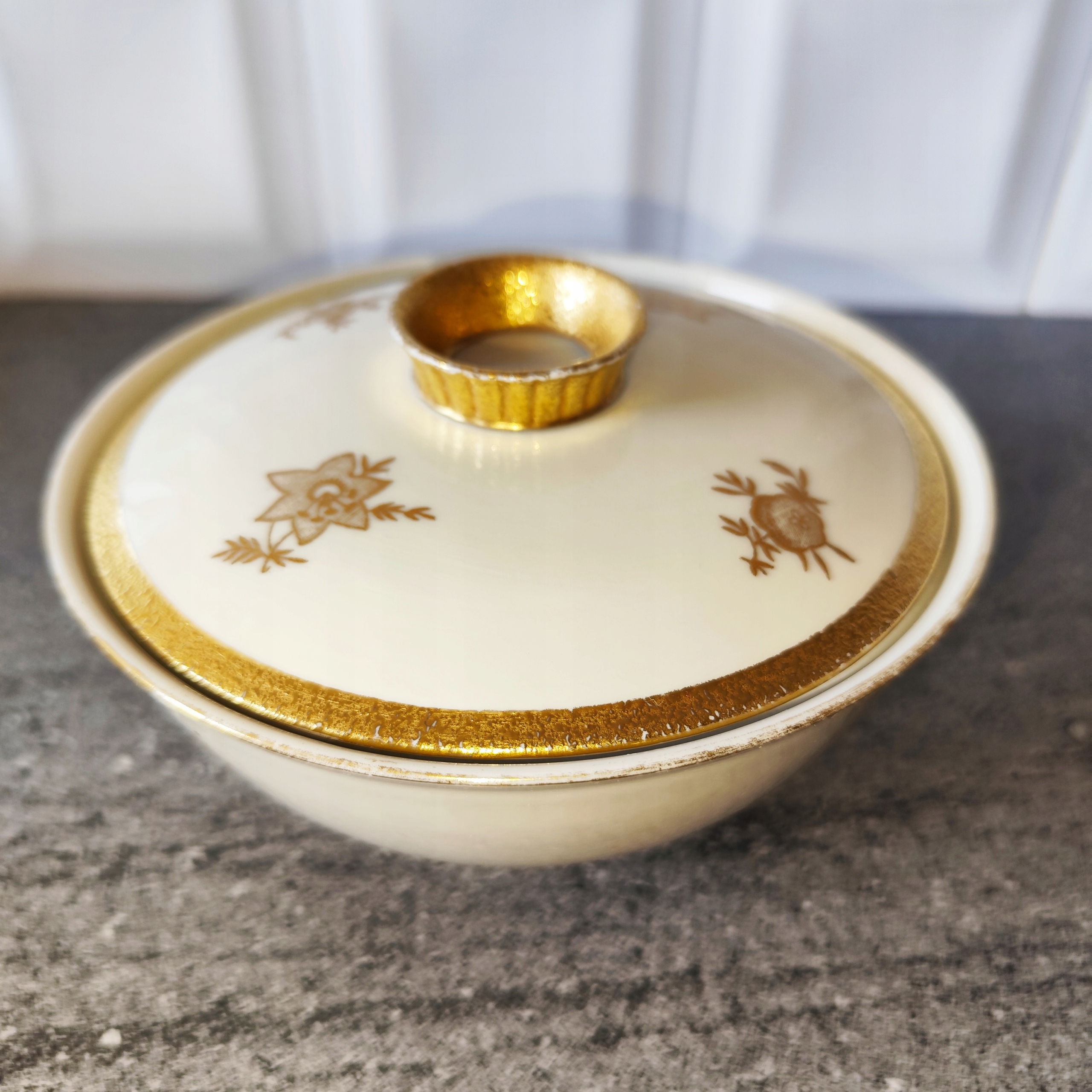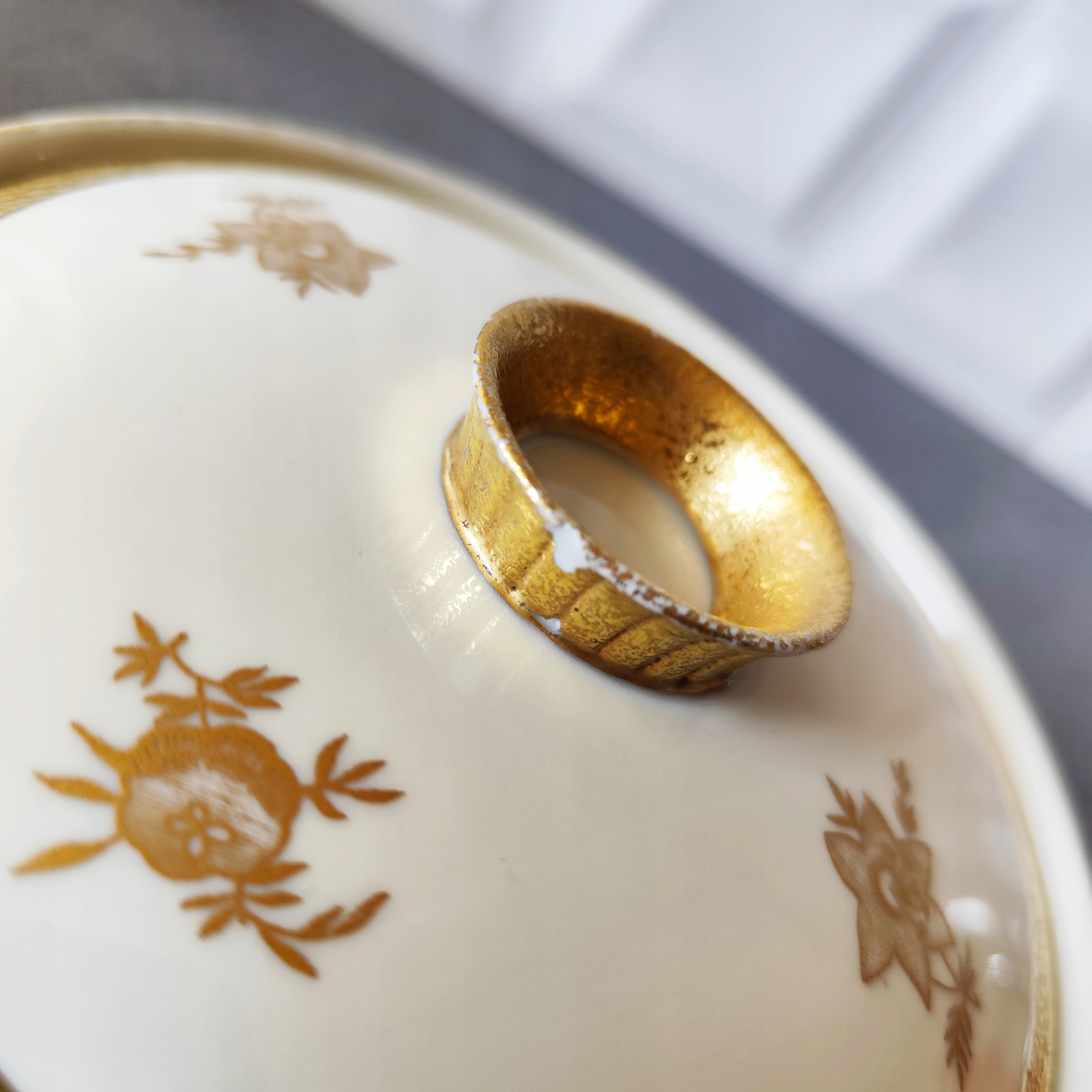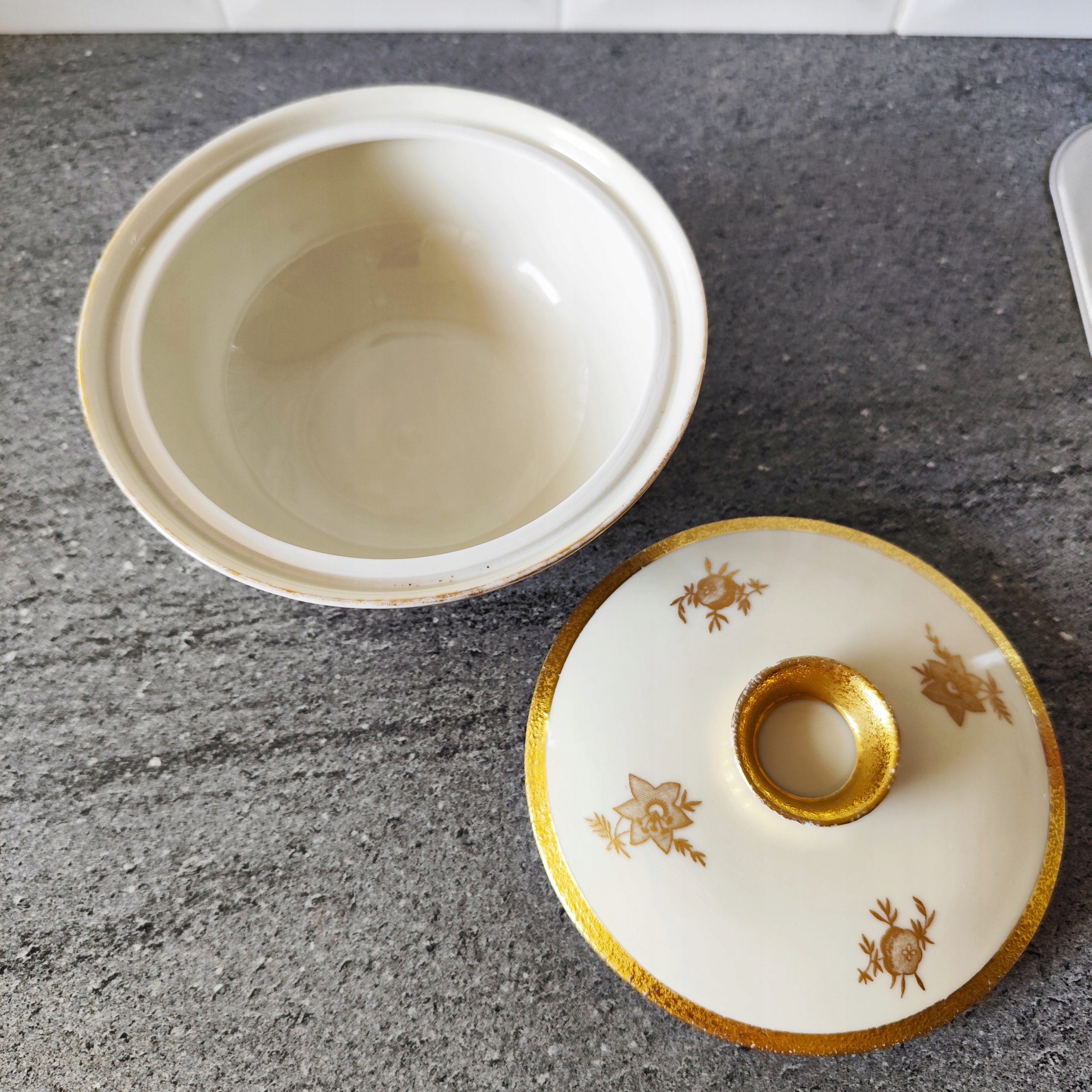 Позолочена порцелянова цукорниця, підпис Ilmenau Graf Von Henneberg