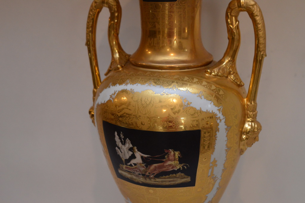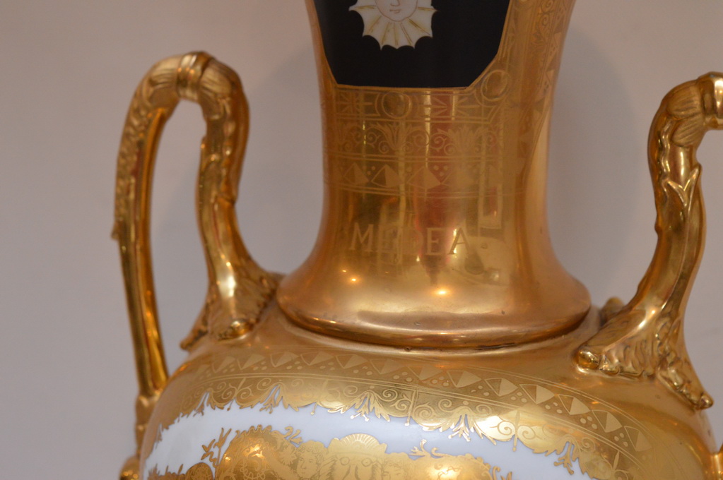 ПОЗОЛОЧЕНА ВАЗА-ФАРФОР-МІФОЛОГІЯ-БІЛИЙ ВОРОН