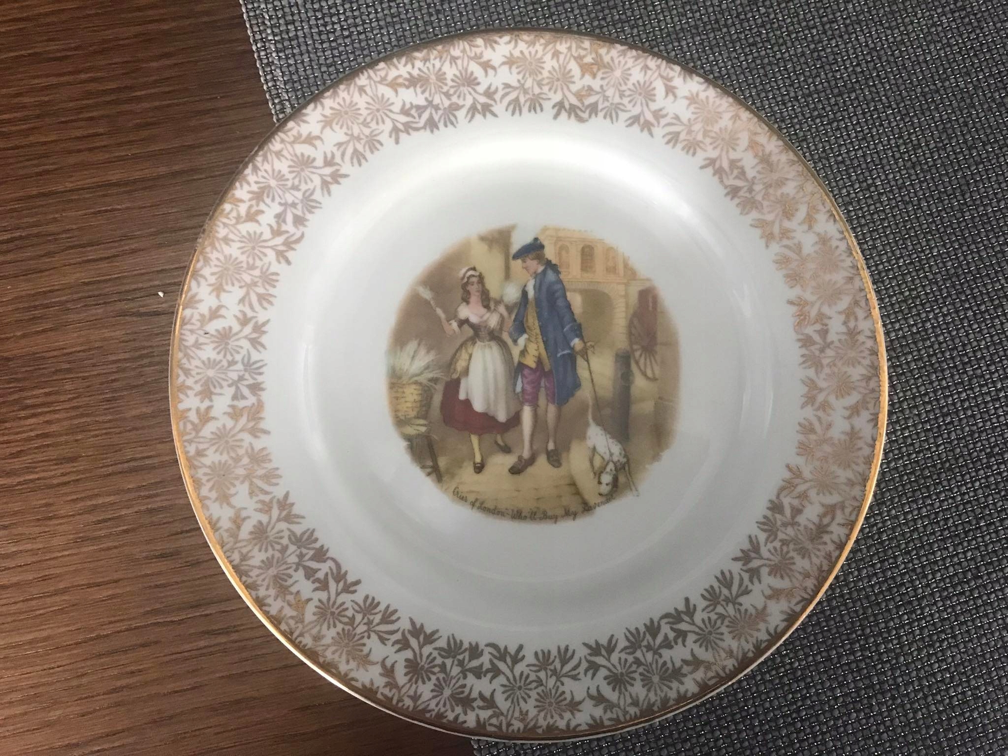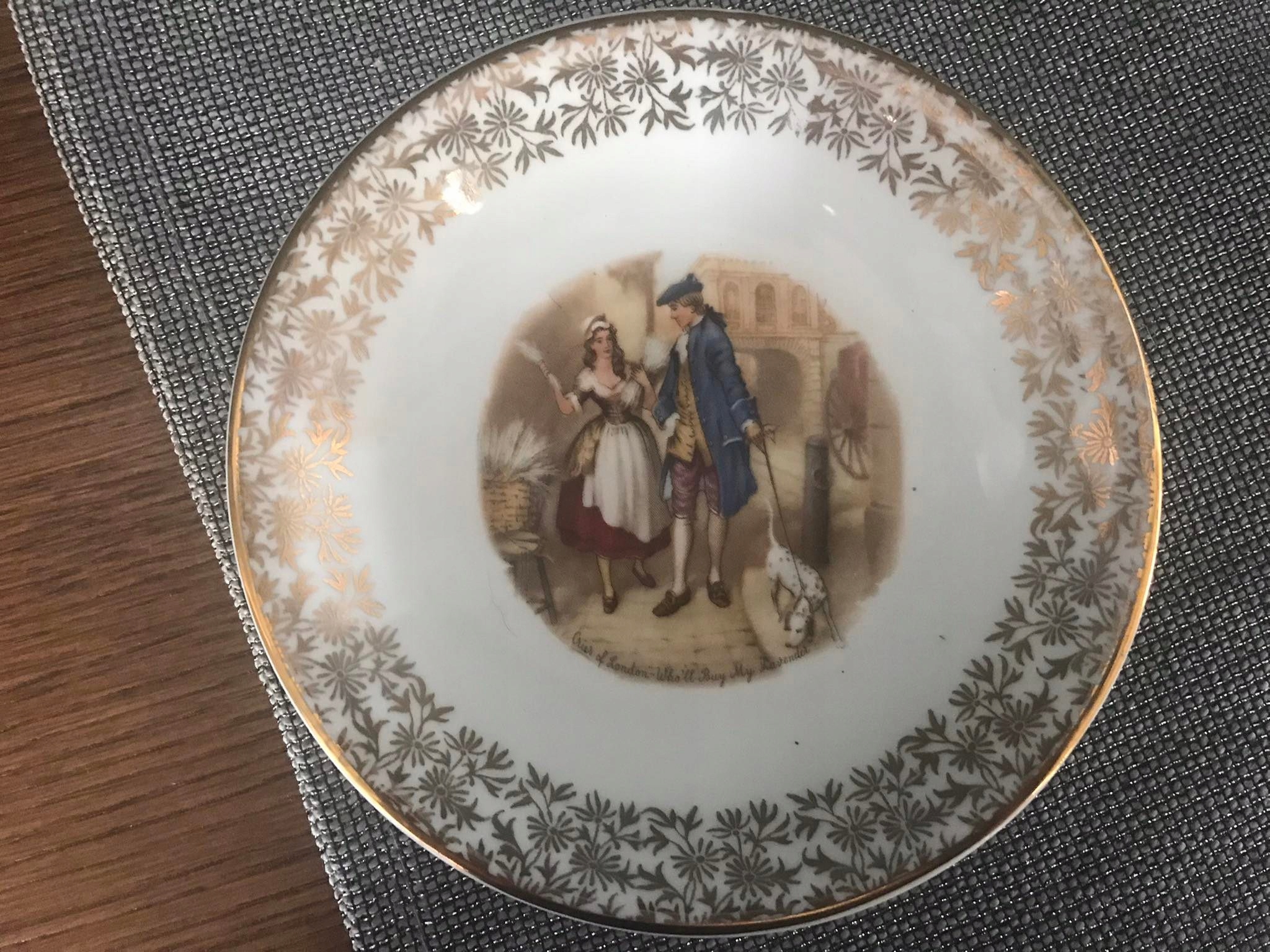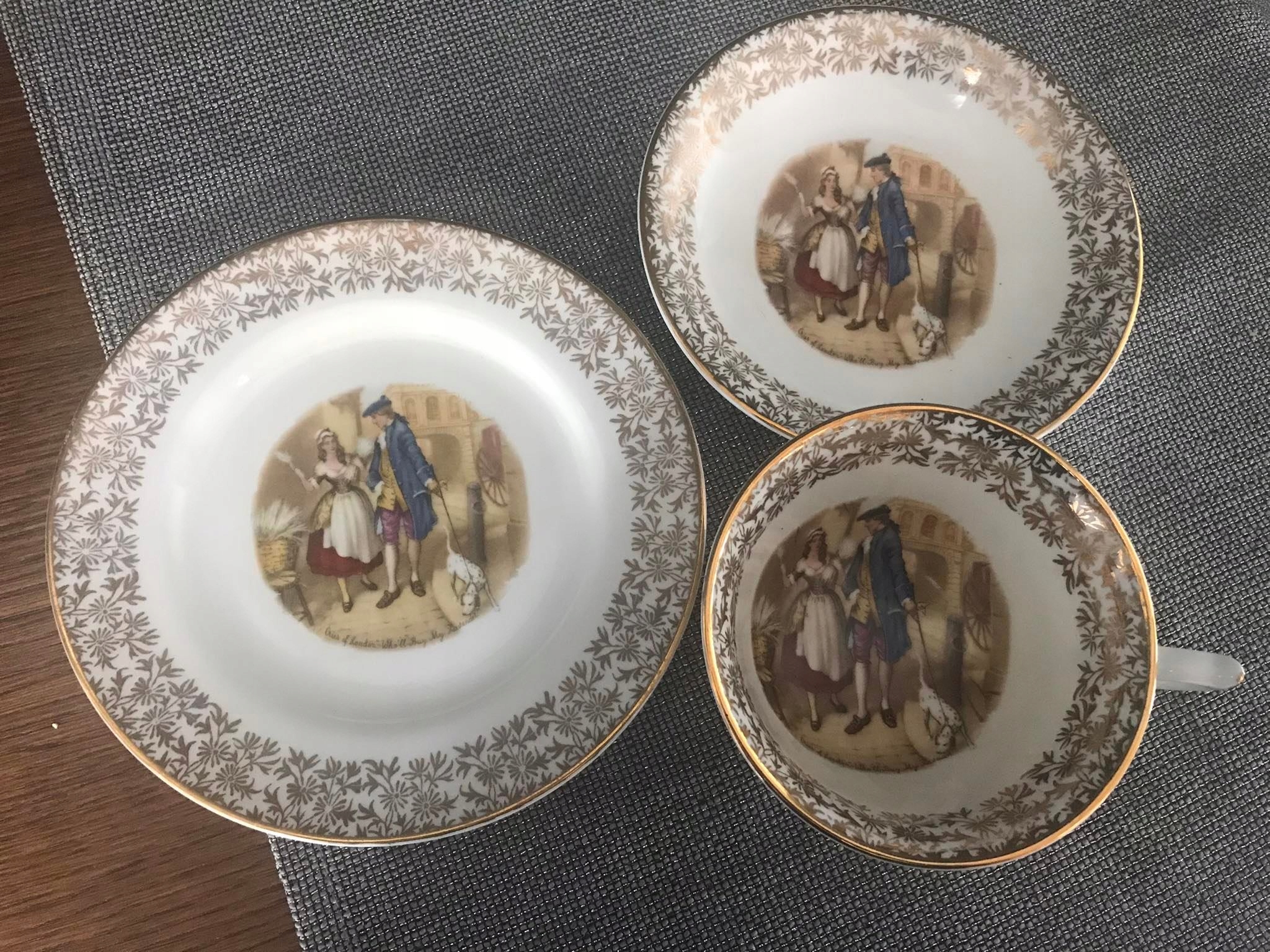 Позолочені порцелянові чашка і тарілки. Пара і собака