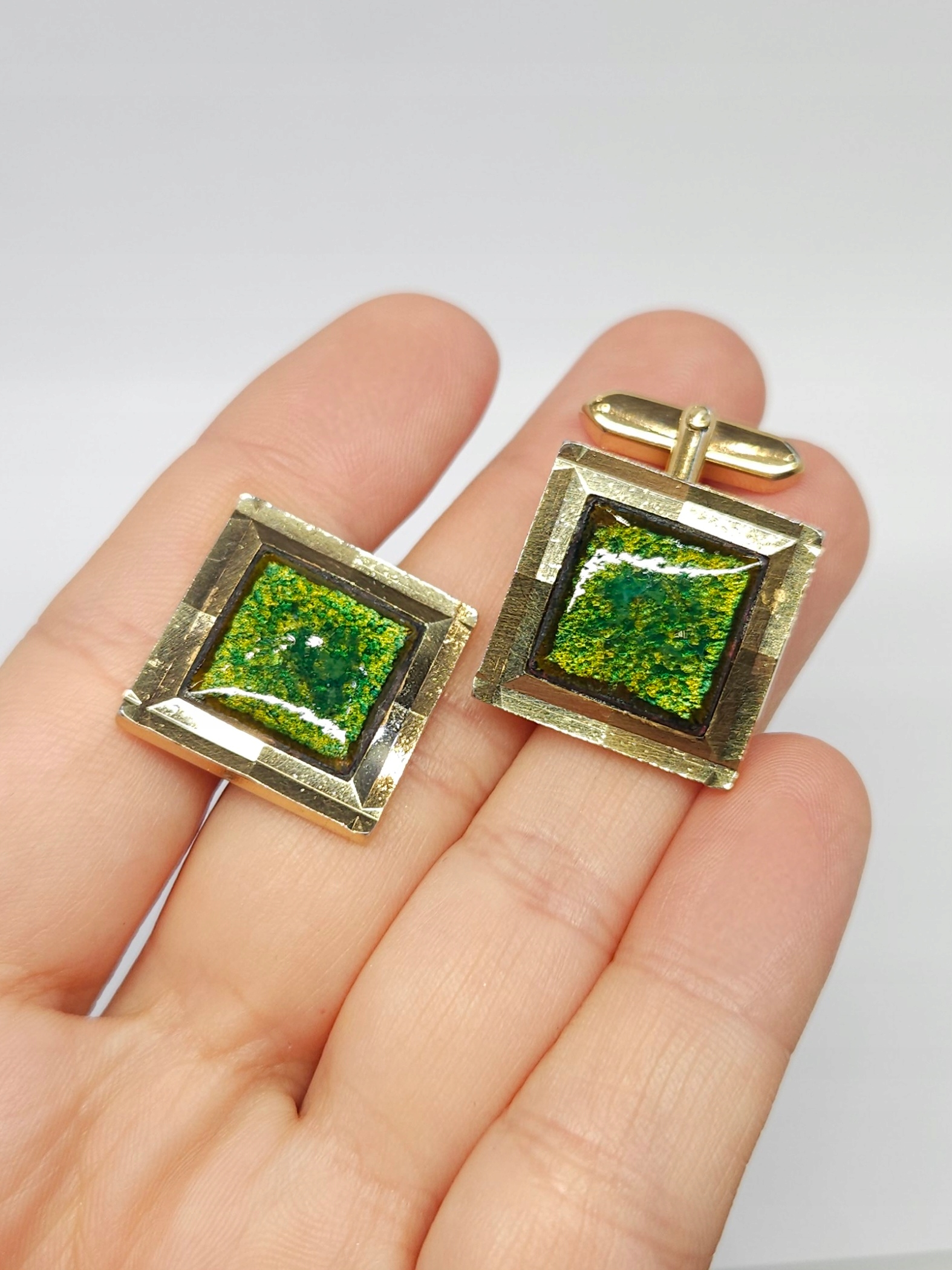 Позолочені запонки з зеленою емаллю, позолочена латунь