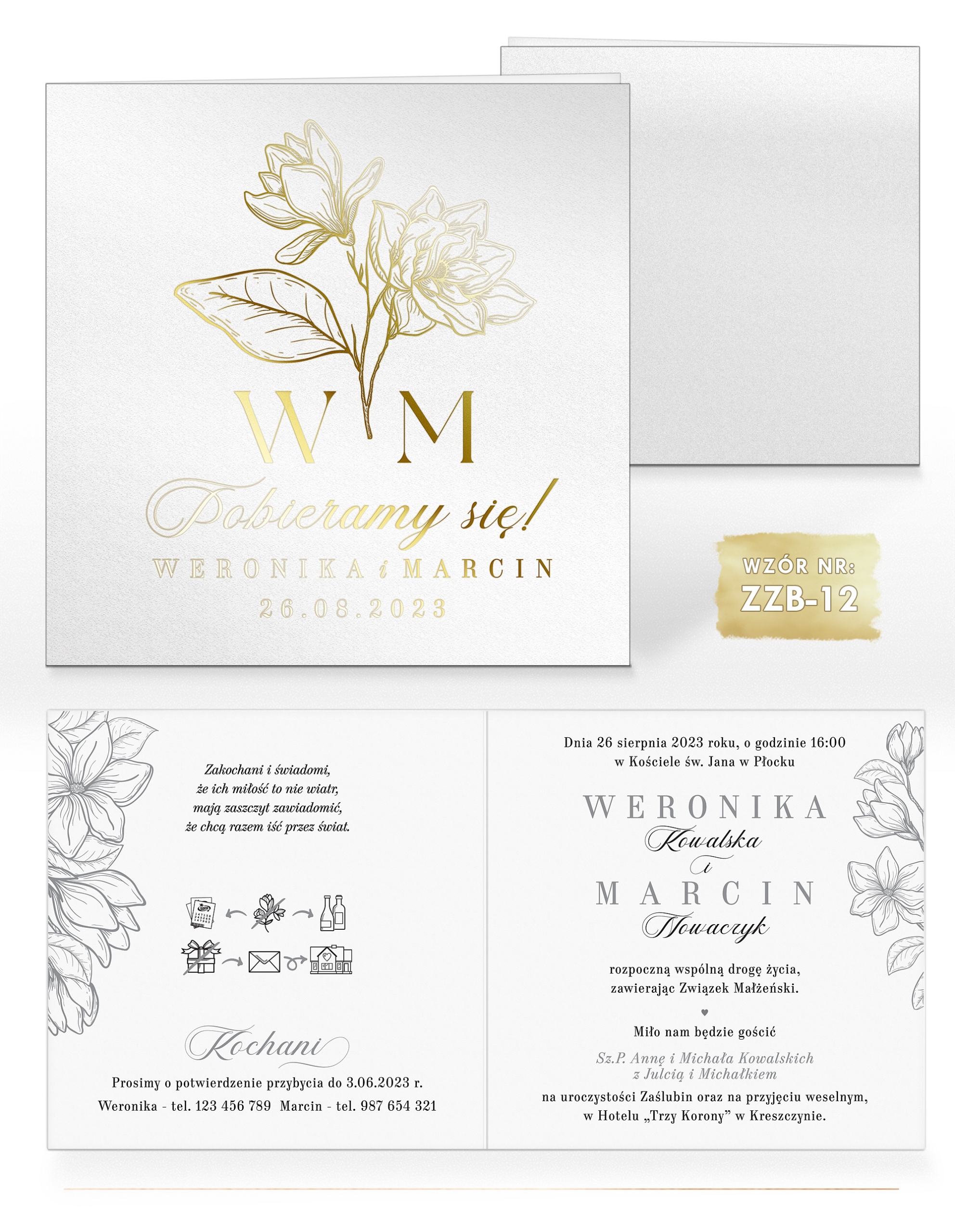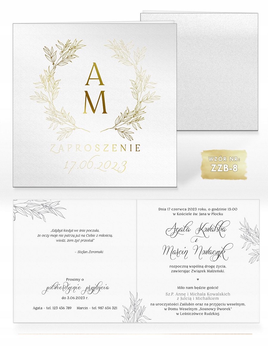 Зразки - це повноцінні запрошення за якістю виготовлення, поліграфії та типом паперу, які покликані допомогти вам визначитися з вибором дизайну. На жаль, у випадку зразків неможливо внести будь-які зміни у вміст, кольори чи вибір шрифту.