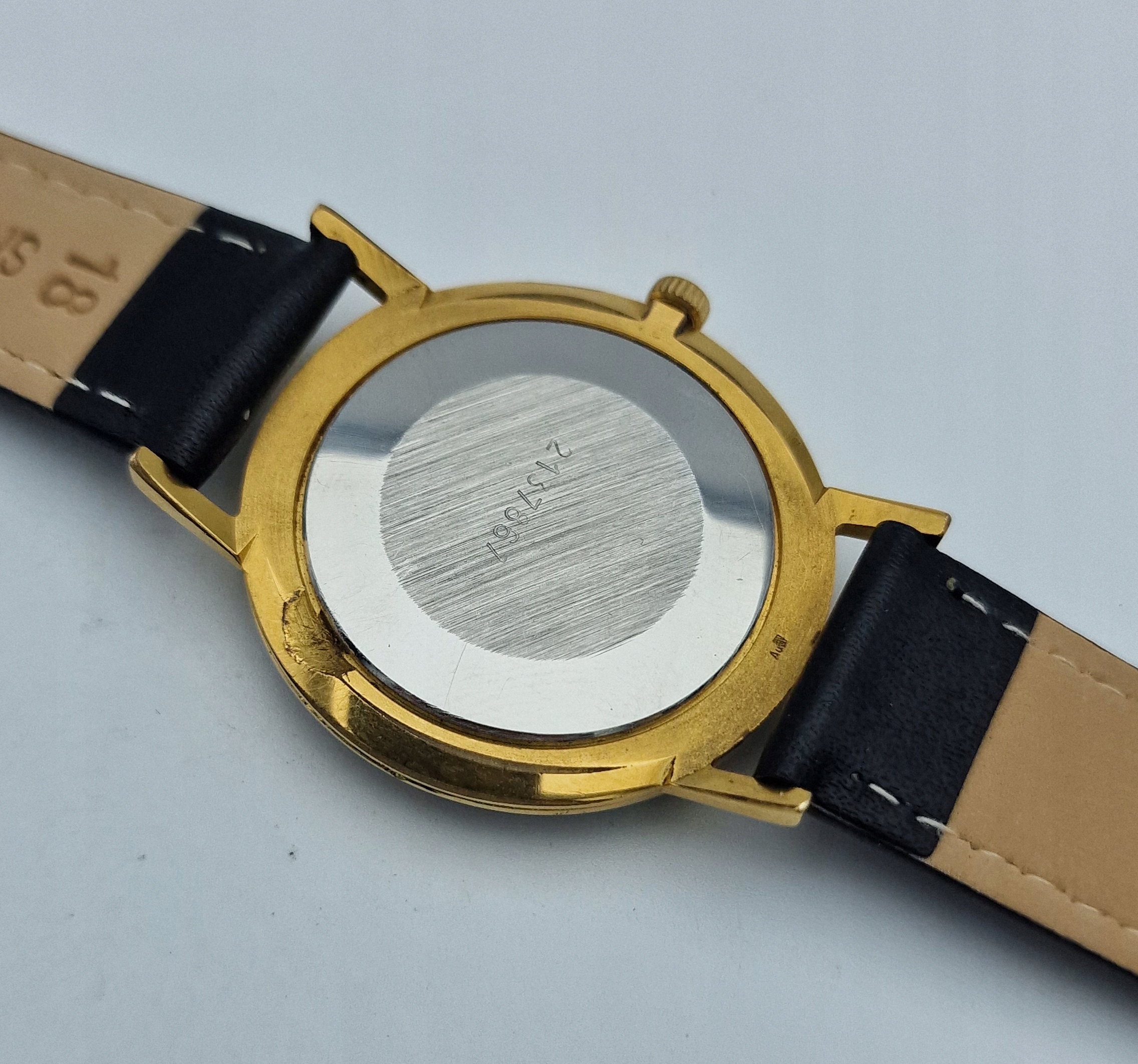 - Позолочений механізм годинника на 23 камені, з якоряною кришкою. Механізм на гарній прогулянці, після огляду та обслуговування у годиннику у відмінному стані.
