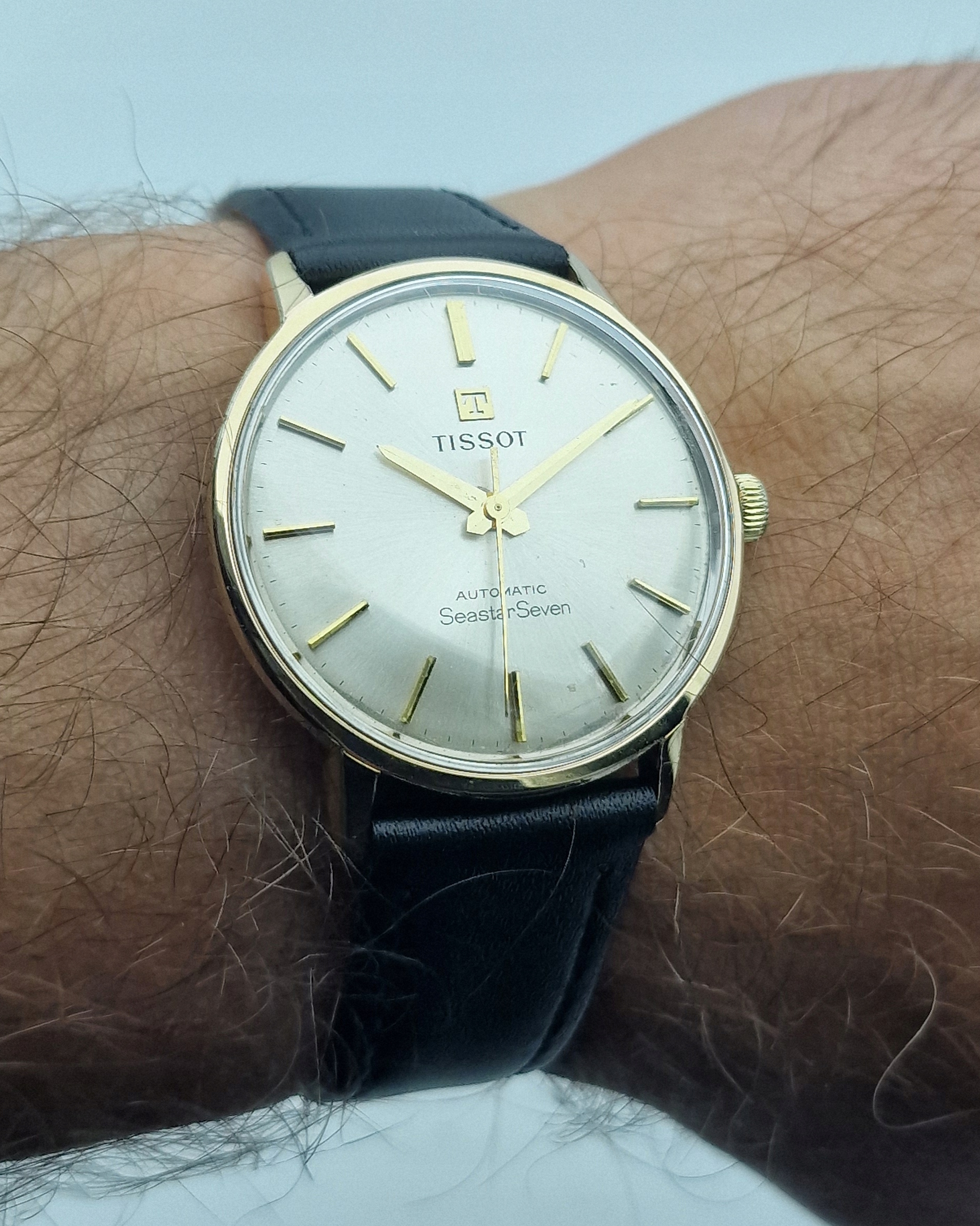 - Срібний щит із золотими мітками. Підписаний щит: " тиссот, автоматичний, Seastar Seven, Swiss Made ". Щит у майже ідеальному стані, який представлений на фотографіях аукціону.