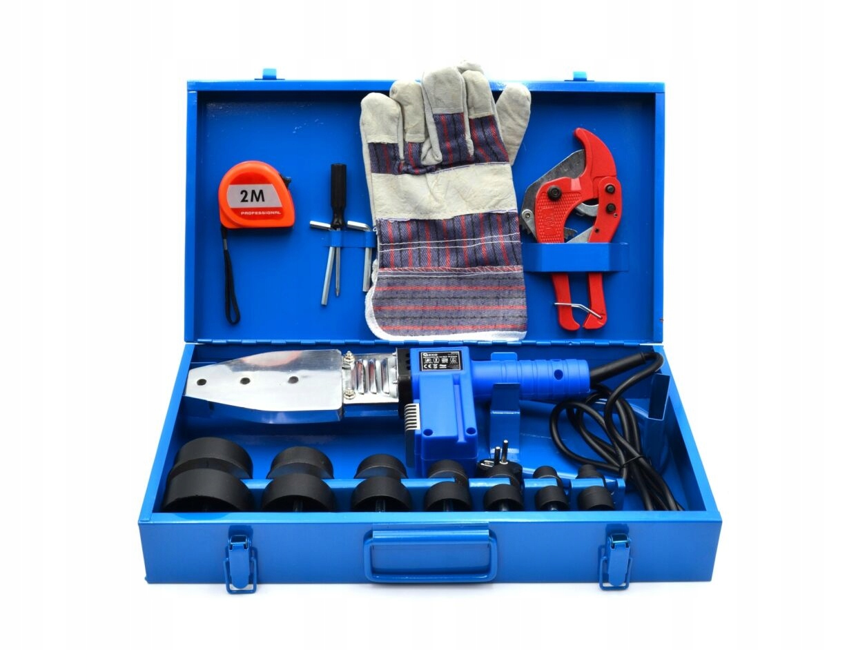 Зварювальний апарат LCD потужністю 1500 Вт для зварювання труб і фітингів з полімерів поліетилену (ПЕ), поліпропілену (ПП) і полібутилену (ПБ); використовується для систем водопостачання та центрального опалення. Оснащений РК-дисплеєм, що дозволяє точно встановлювати температуру. Нагрівальні муфелі, що входять до комплекту, дозволяють працювати з трубами та фітингами діаметром від 16 до 63 мм.