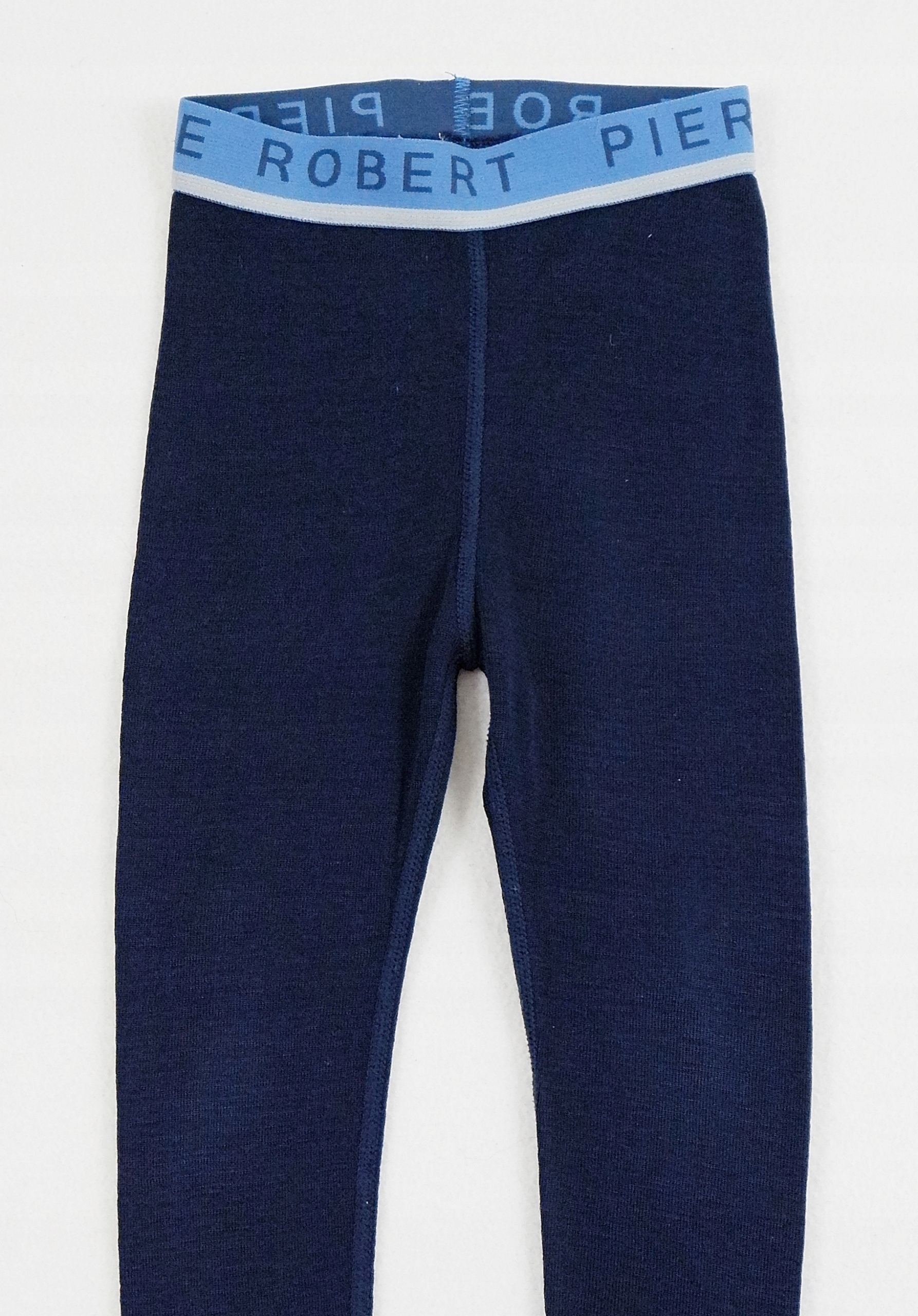Військово -темні блакитні гетри. Зовнішні сторони безшовні, інші плоскі шви. Ноги закінчили Welt. Записана гумка на талії. Вищий тил. Зовнішня сторона 53 см, довжина ніг з кроку 34 см, плоский пояс 2 х 19,5 см