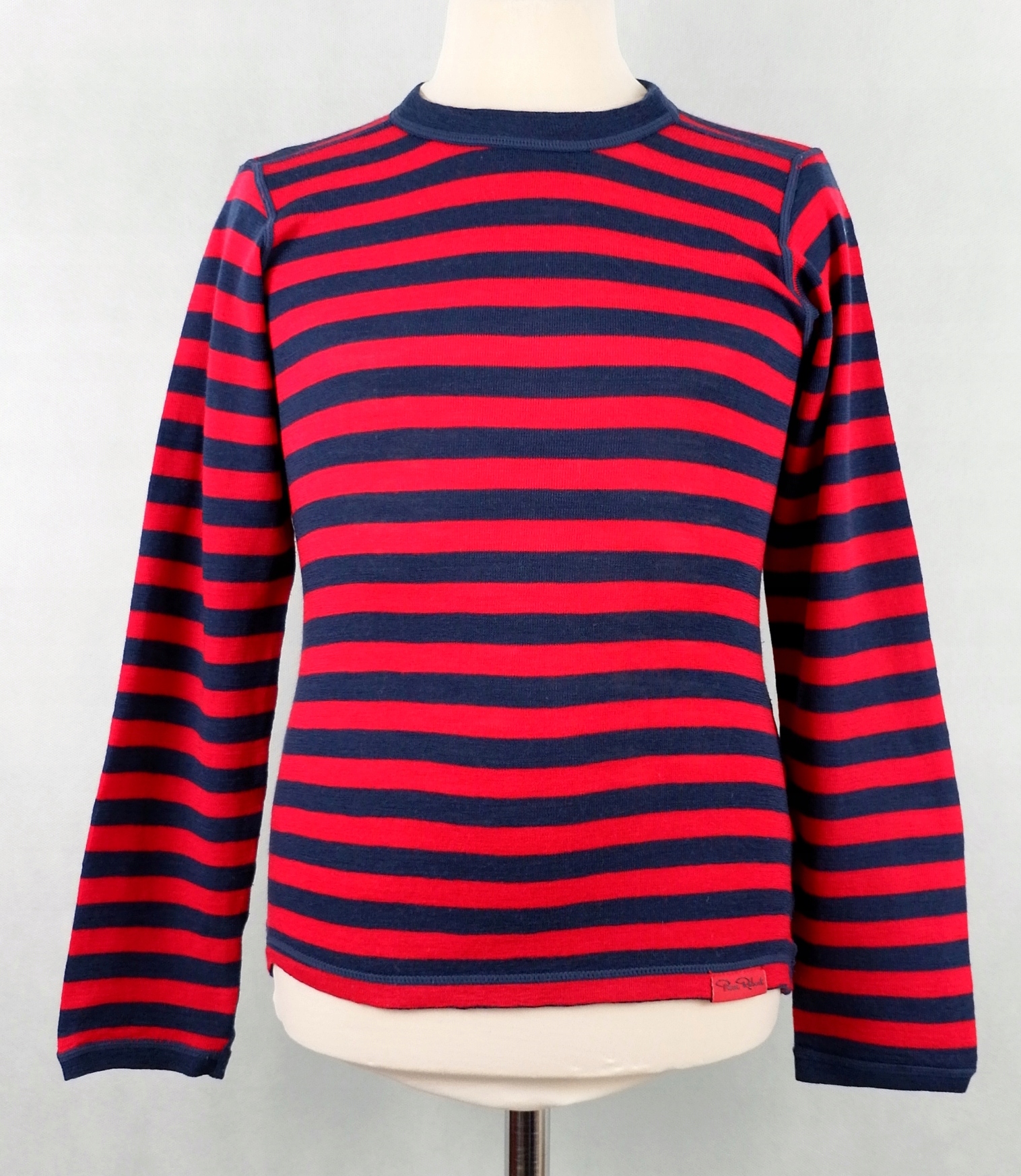 блузка з темно -синім та червоним смугастою. Довше на спині. Військово -морські юридичні гетри, реєструвати гумовий пояс. Всі плоскі шви. CM