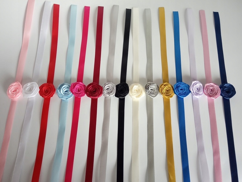 Шпилька зроблена з атласної стрічки шириною приблизно 1,2 см. троянда.