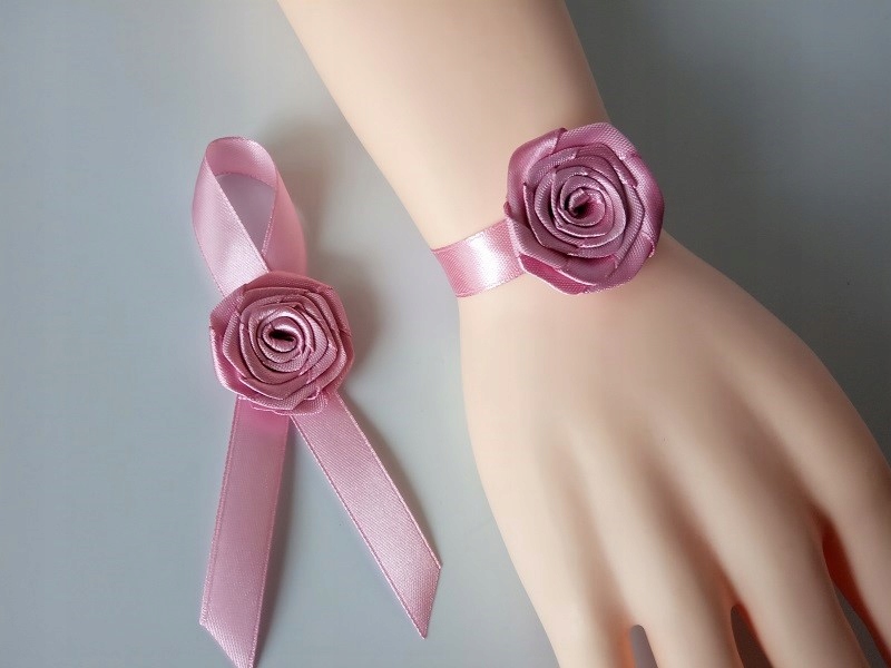 Шпилька зроблена з атласної стрічки шириною приблизно 1,2 см. троянда.