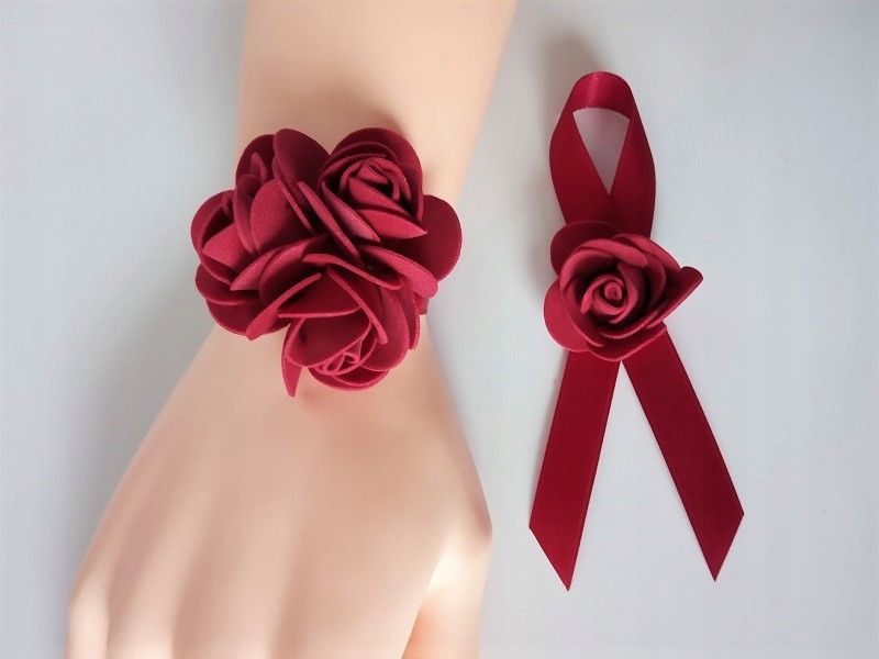 * бордова пінопластова троянда, приблизно 3 см у діаметрі.