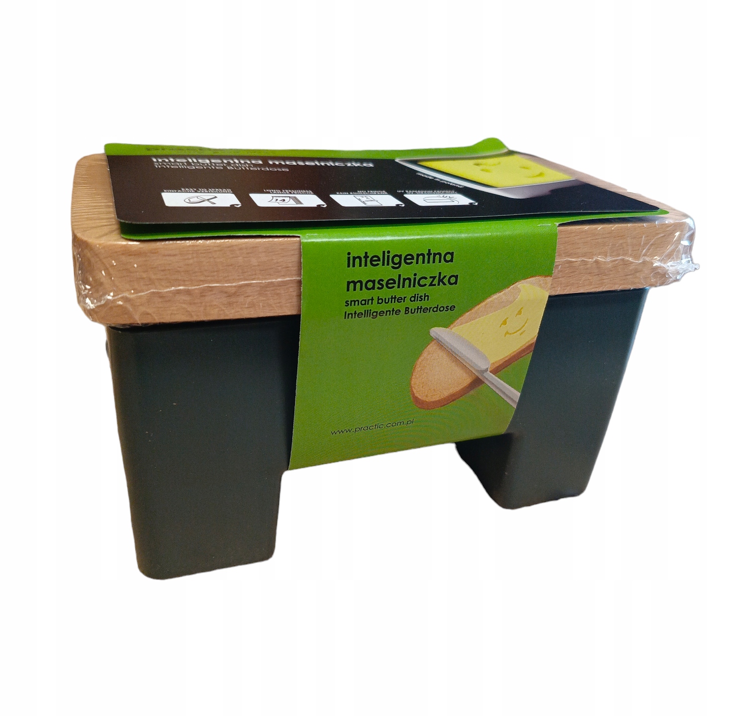 Маслярниця з високоякісного пластику, дерев'яна кришка.