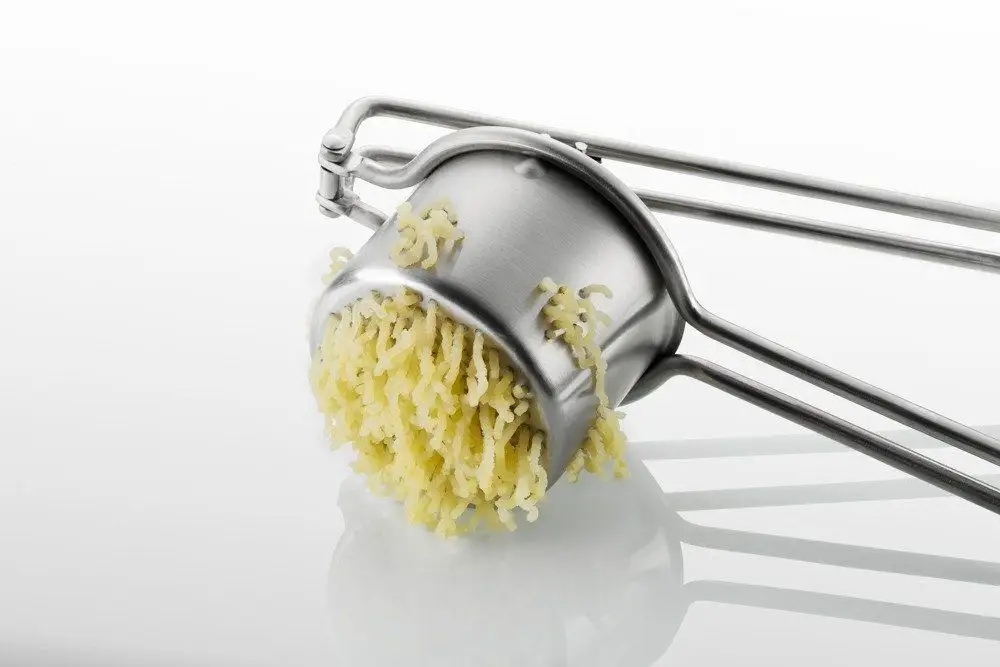 Німецька марка GEFU протягом багатьох років стверджує, що кожен з нас може стати художником на кухні. Ось чому кухонні аксесуари цього виробника характеризуються високим рівнем продуктивності, вибором найкращої якості сировини та, перш за все, величезною функціональністю, що максимально спрощує кулінарні заходи. Картопля та фруктова соковижималка в одному - приклад ідеального кухонного гаджета. Один пристрій пропонує вам безліч можливостей використання під час кухонної роботи. Преса соковижималки для фруктів, овочів, вареної картоплі буде корисною для приготування як основних страв, так і для початку або десертів. Як овочева соковижималка, він ідеально підходить для швидкої приготування пюре не тільки з картоплі, але гарбуза, моркви чи селери. Цей багатофункціональний кухонний прес - справжній скарб у будинку, де він піклується про різноманітну та здорову дієту. Прес для стискання фруктів та овочів дуже зручно використовувати. Це легко очистити, а гігієнічна та постійна сталь робить його практичною та міцною кухонною пригодою. Ручна соковижималка не займає стільки місця в кухонних шафах, як його автоматизовані колеги.