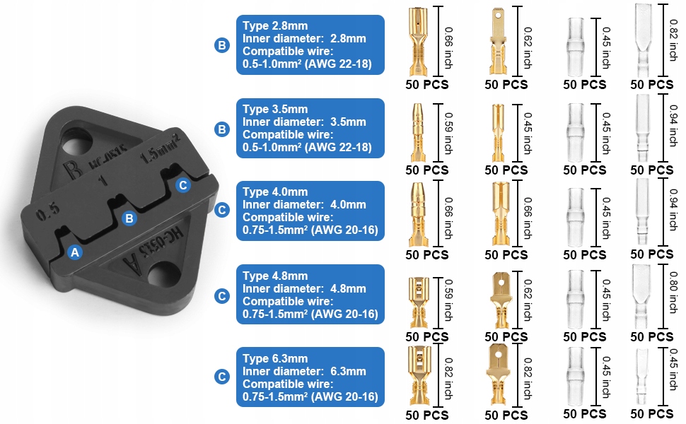 - Розмір затискання: AWG22-16 (0,5-1,5 мм²)