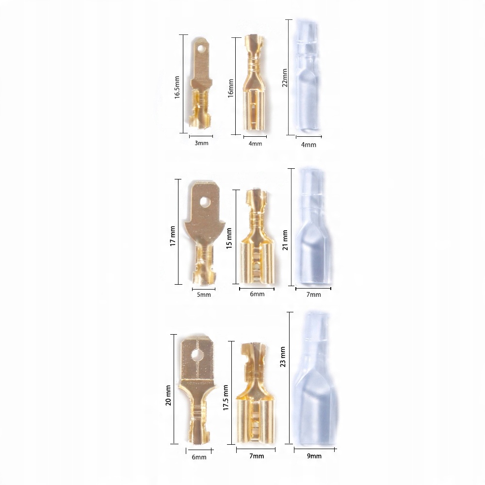 Тип 2,8 мм: Товщина: 0,25 мм (жінка) 0,5 мм (чоловік) Сумісний кабель: 0,5-1,5 мм2 (AWG22-16)