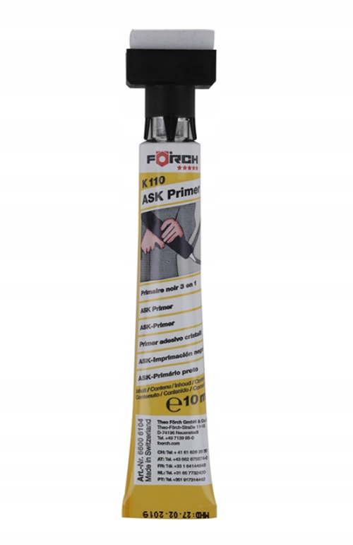 - Чорний, затверділий під впливом вологи в повітрі, підвищує адгезію всіх клеїв Förch для скла, підвищує адгезію на склі, кераміці, пофарбованих поверхнях і різних металах