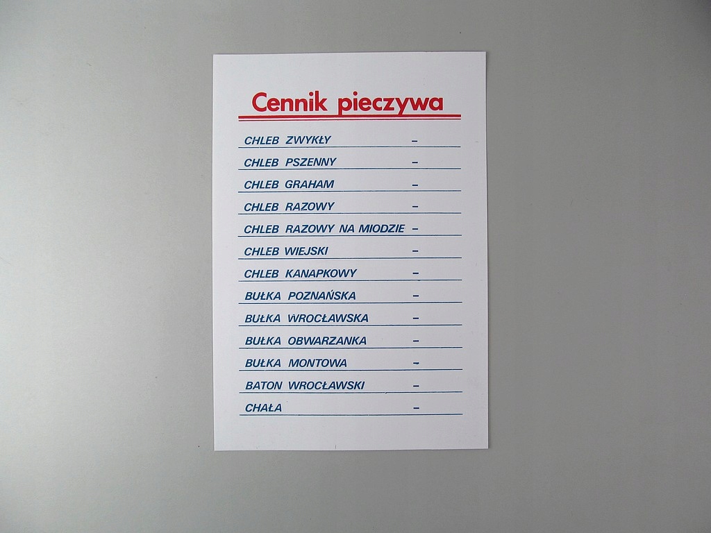 Покупая «ПРАЙС-ЛИСТ МАГАЗИНУ PRL BREAD BUN CHAŁA РАЗОМ» данный товар из каталога «Остальные» вы можете быть уверены, что после оформления заказа, доставки в Украину, вы получите именно то, что заказывали, в оговоренные сроки и европейского качества.