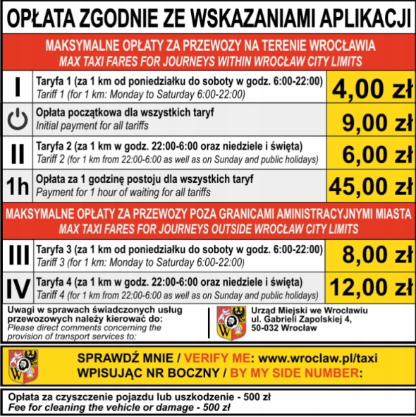 ПРАЙС-ЛИСТ МАГНІТ ТАКСІ ВРОЦЛАВ