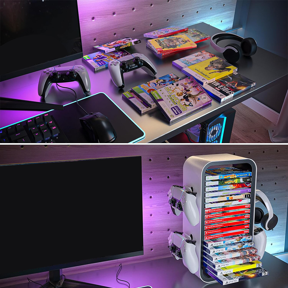 💿-Він може вмістити до 18 ігрових дисків, тому вам не доведеться копатися в купах дисків, і весь простір залишатиметься охайним.