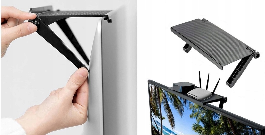 Шельф, що застосовується до комп'ютера або телевізійного монітора, має місткість навантаження, до 2 кг, Ми можемо легко зберігати більшість найнеобхідніших речей, які нам потрібні під час роботи на комп’ютері.