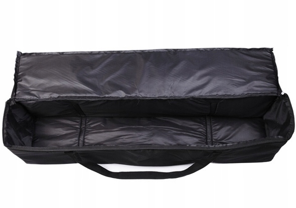 Сумка дуже містка. Ідеально вміщує кілька великих студійних штативів (5-7 шт.), парасольки, лампочки, софтбокси, спалахи, студійні рами, поперечини для підвішування фонів і навіть фотофони шириною до 105 см.