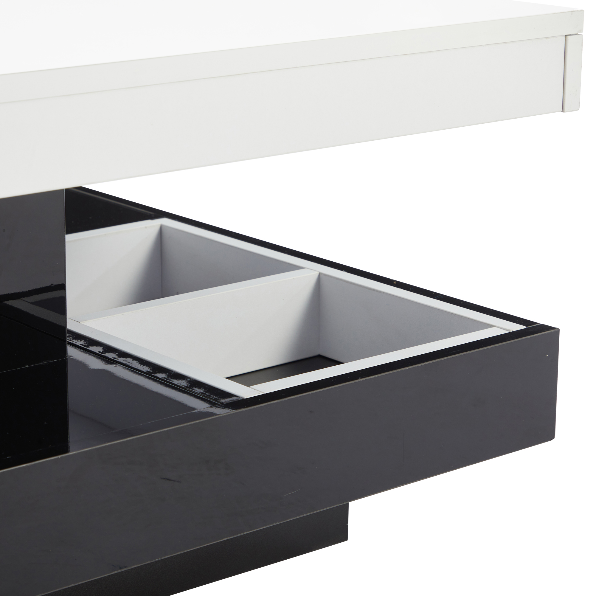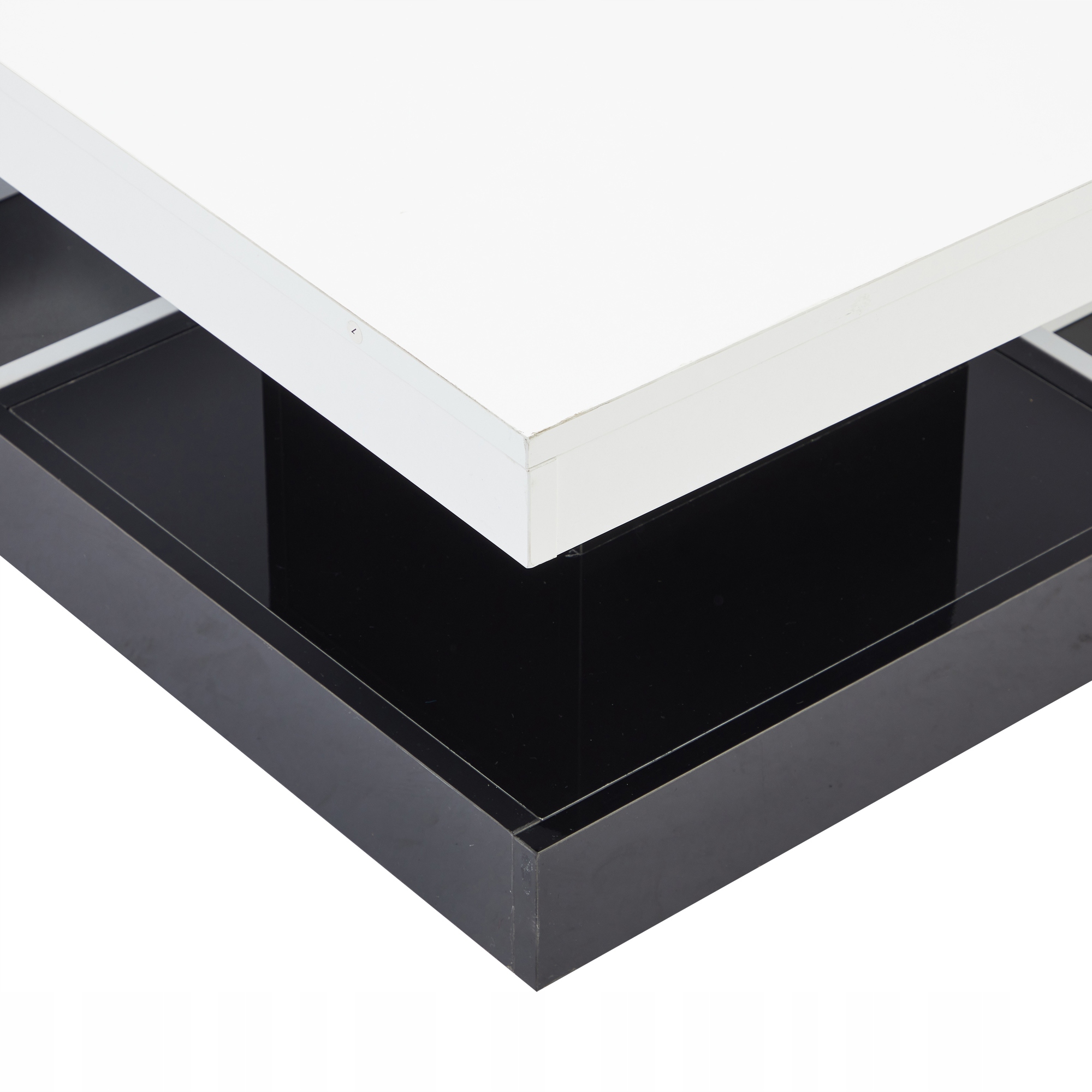 Функціональний журнальний столик з блиском, стіл вітальні, обертання з 360 °, 2-рівня обертового верху з зберіганням, біла столова верхівка, чорна основа рамка 70*70*36 см