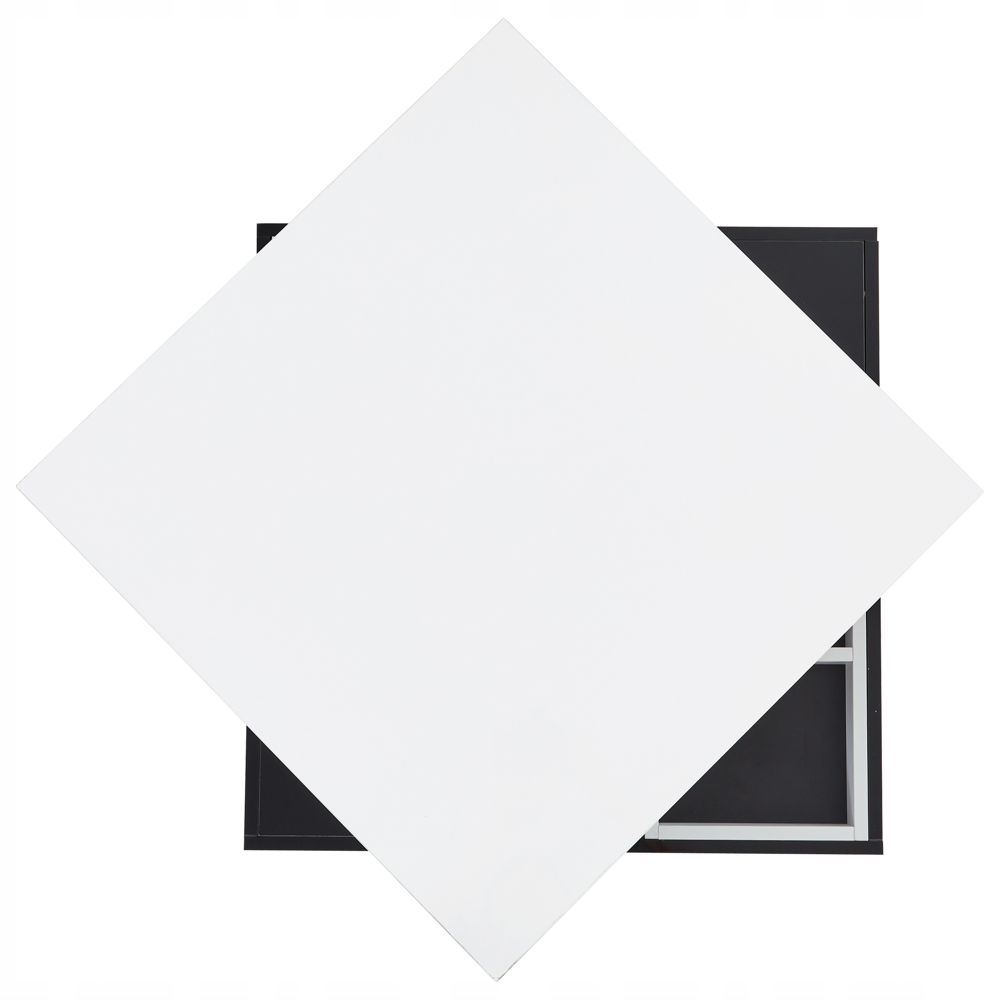 - Весь журнальний столик виготовлений з ДСП, має білий верх і чорні дошки для спінів. У той же час він забезпечує міцність квадратного журнального столика, деформації та тривалого життя. Великий стіл для зберігання на підлозі забезпечує місце для повсякденних предметів.
