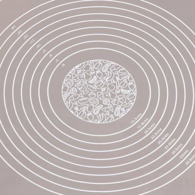Силіконовий килимок має зроблені лазером поділки по довжині та діаметру, завдяки чому вони добре помітні та не виділяються на тісті!