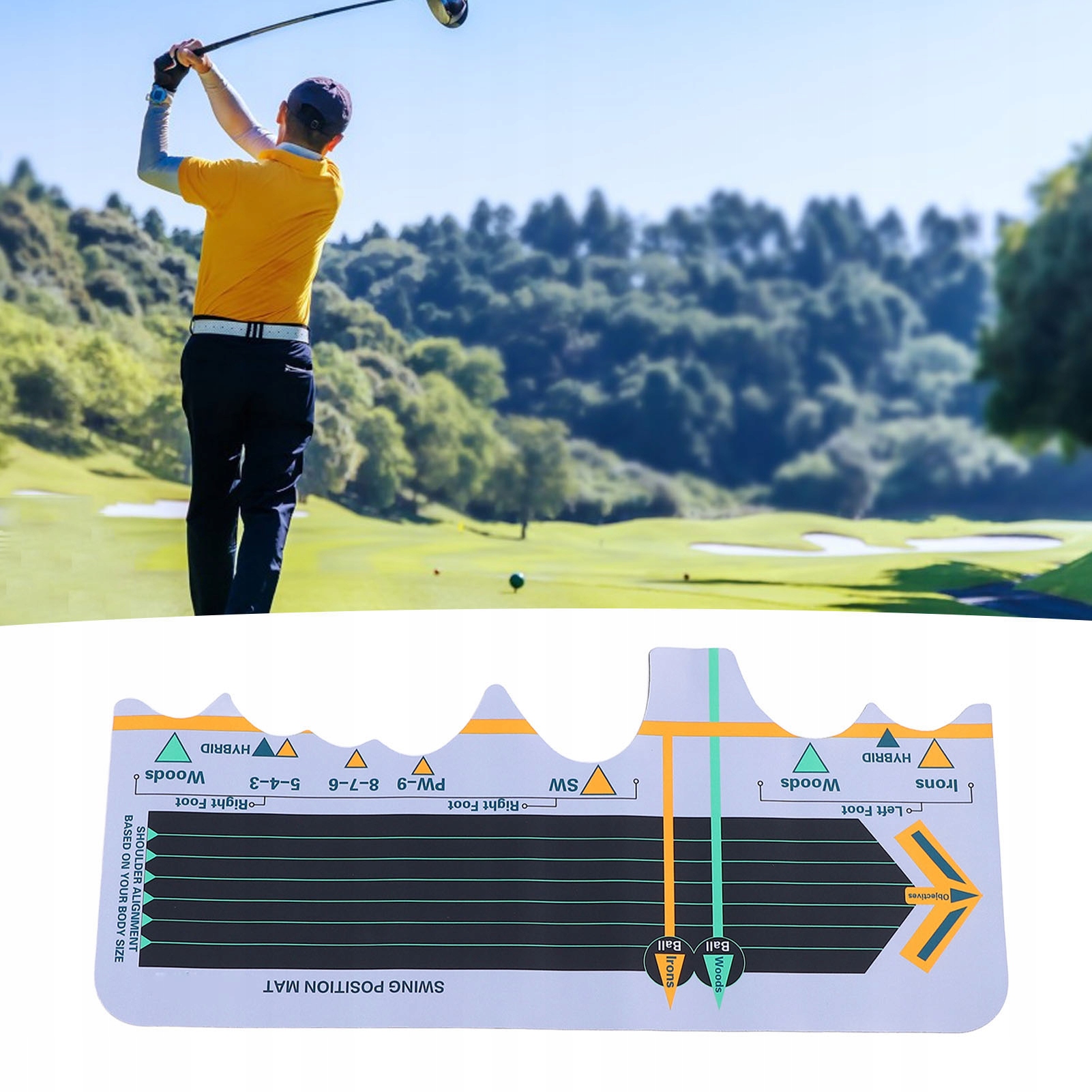 Функція:1. Сприяти оптимальному вирівнюванню: цей килимок для постави розроблено, щоб допомогти вам відкалібрувати вашу стійку та положення розмаху для кожної ключки, яку ви використовуєте, забезпечуючи ідеальну форму кожного замаху. Досягніть стабільної продуктивності за допомогою правильного вирівнювання.