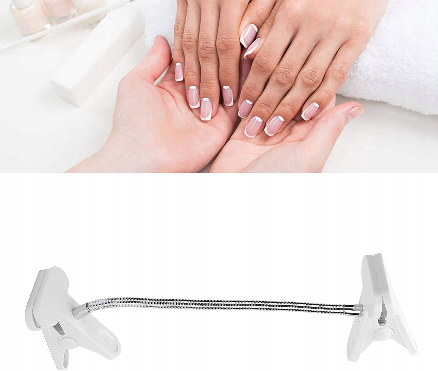 Обидва кінці можна використовувати, щоб стискати предмети одночасно, а дві руки можна стискати для тренування нігтів. Найбільша довжина становить 30 см, її можна вільно згинати та повертати для задоволення різних потреб. Максимальний розмір отвору становить 6 см. Розмір затискача можна вільно регулювати для забезпечення комфорту. Виготовлений з високоякісного матеріалу, безпечний і екологічно чистий, стабільний і довговічний основний інструмент для нейл-арту. Він може добре затискати та фіксувати практичну руку, що зручно для обробки нігтів.