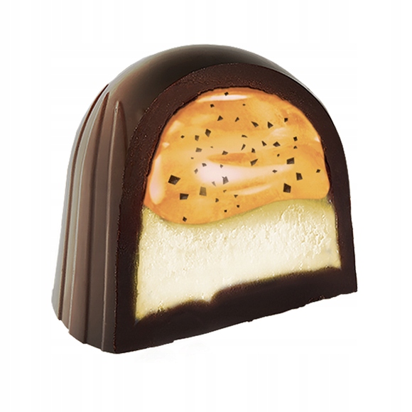 - Праліне у формі горба, вкрите глазур’ю з чорного шоколаду