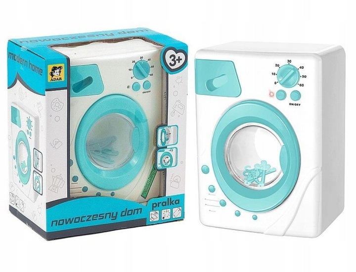 Біло-бірюзова пральна машина зі світлом і звуком ПРАННЯ