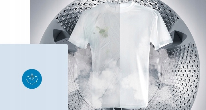 Технологія Steamcure ™ використовує пару під час промивання для ще кращого ефекту. Пара, додана на початку циклу, допомагає видалити найскладніший бруд, а застосування в кінці зменшує складки. Висока температура пари дозволяє постійно та ефективно видаляти всі плями, без необхідності додаткових миючих засобів.