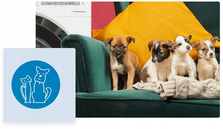 Немає сумніву, що власники домашніх тварин люблять своїх пухнастих друзів. Функція видалення шерсті домашніх тварин виконає свою роботу завдяки попередньому пранню та спеціальному додатковому циклу полоскання. Функцію зіниці також оцінять люди, які борються з різними алергіями: вона добре видаляє волосся, ворсинки та пилок.