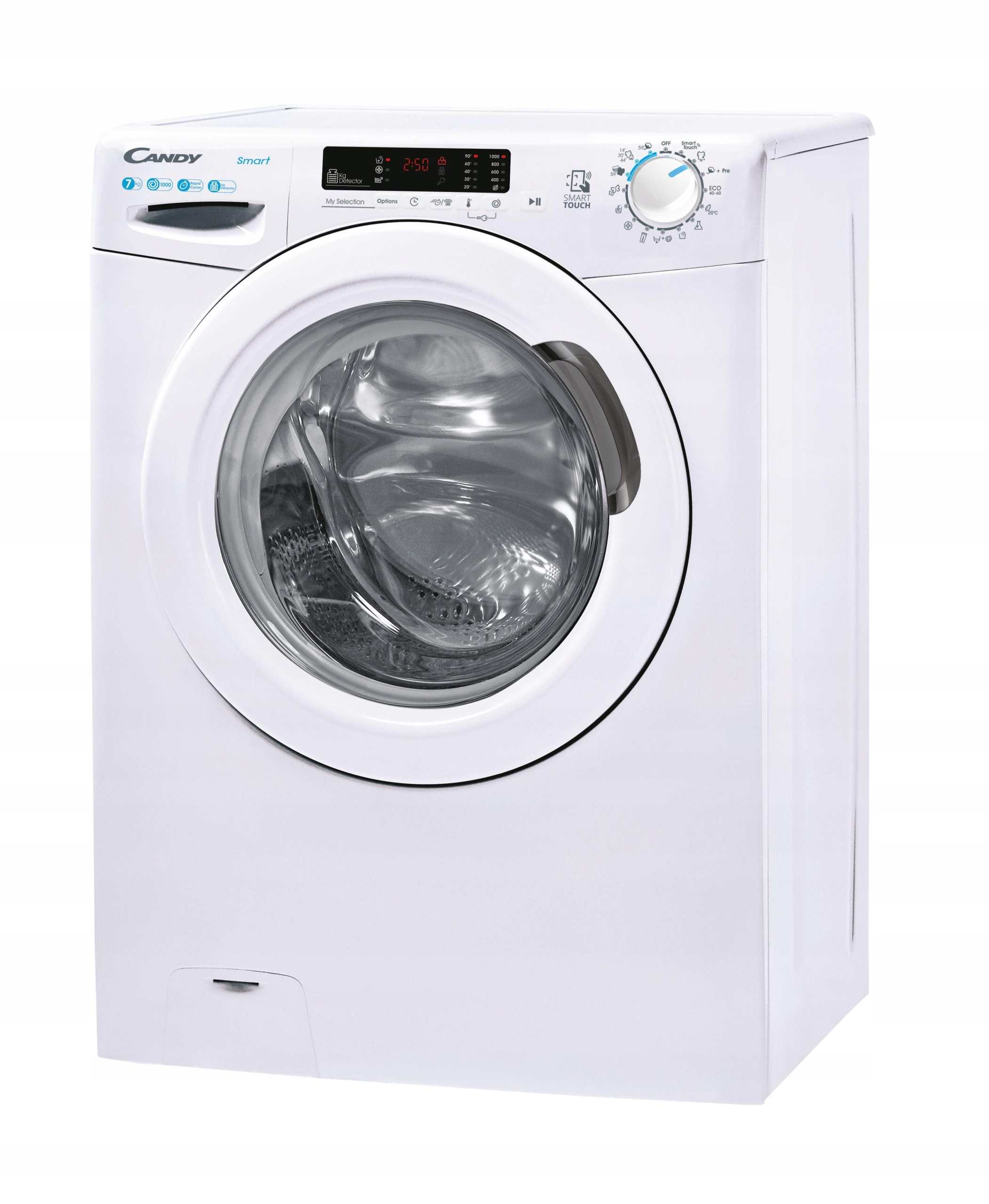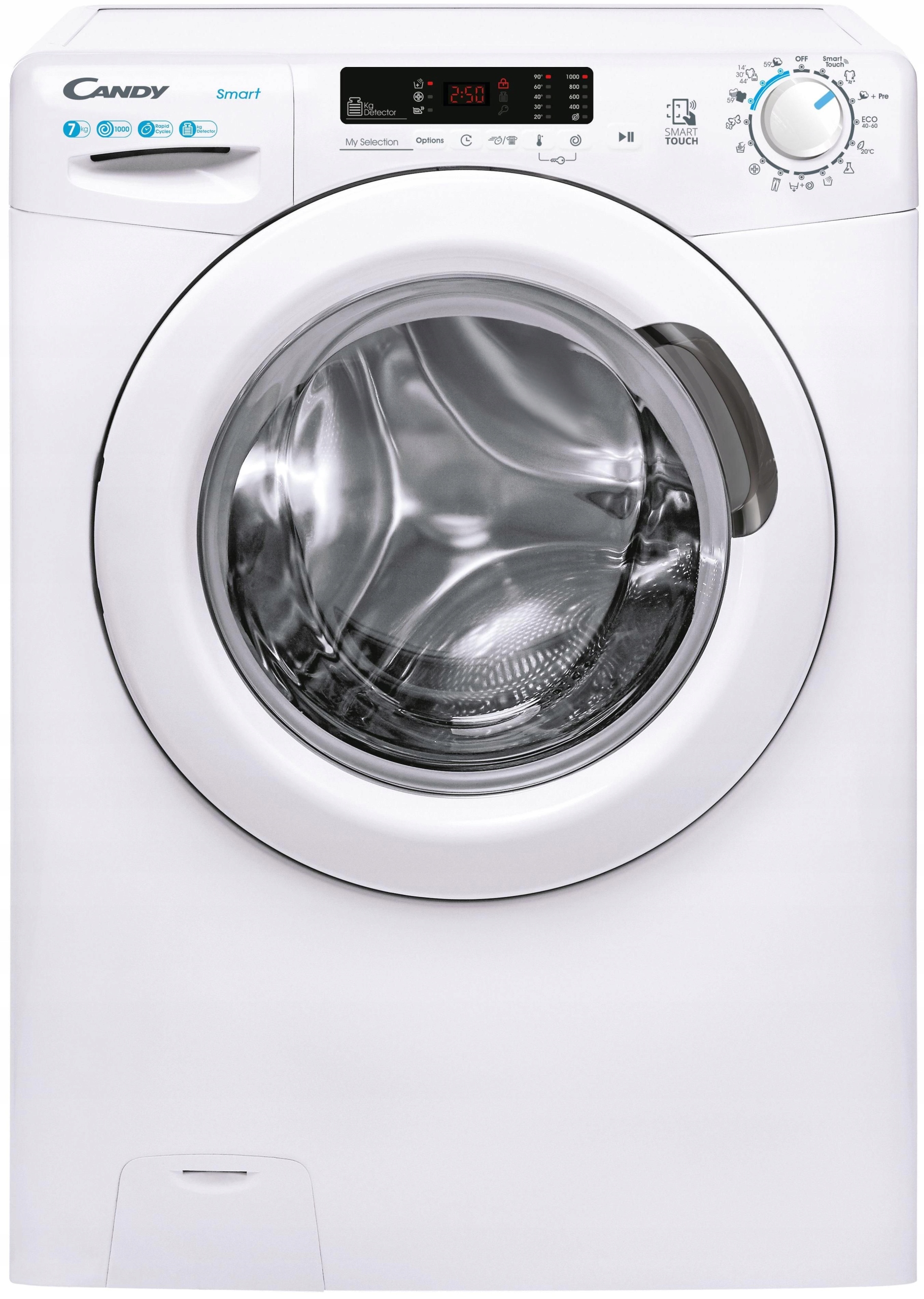 Окремо стояча пральна машина Candy з максимальним завантаженням 7 кг і швидкими програмами прання 14, 30, 44, 59 хвилин